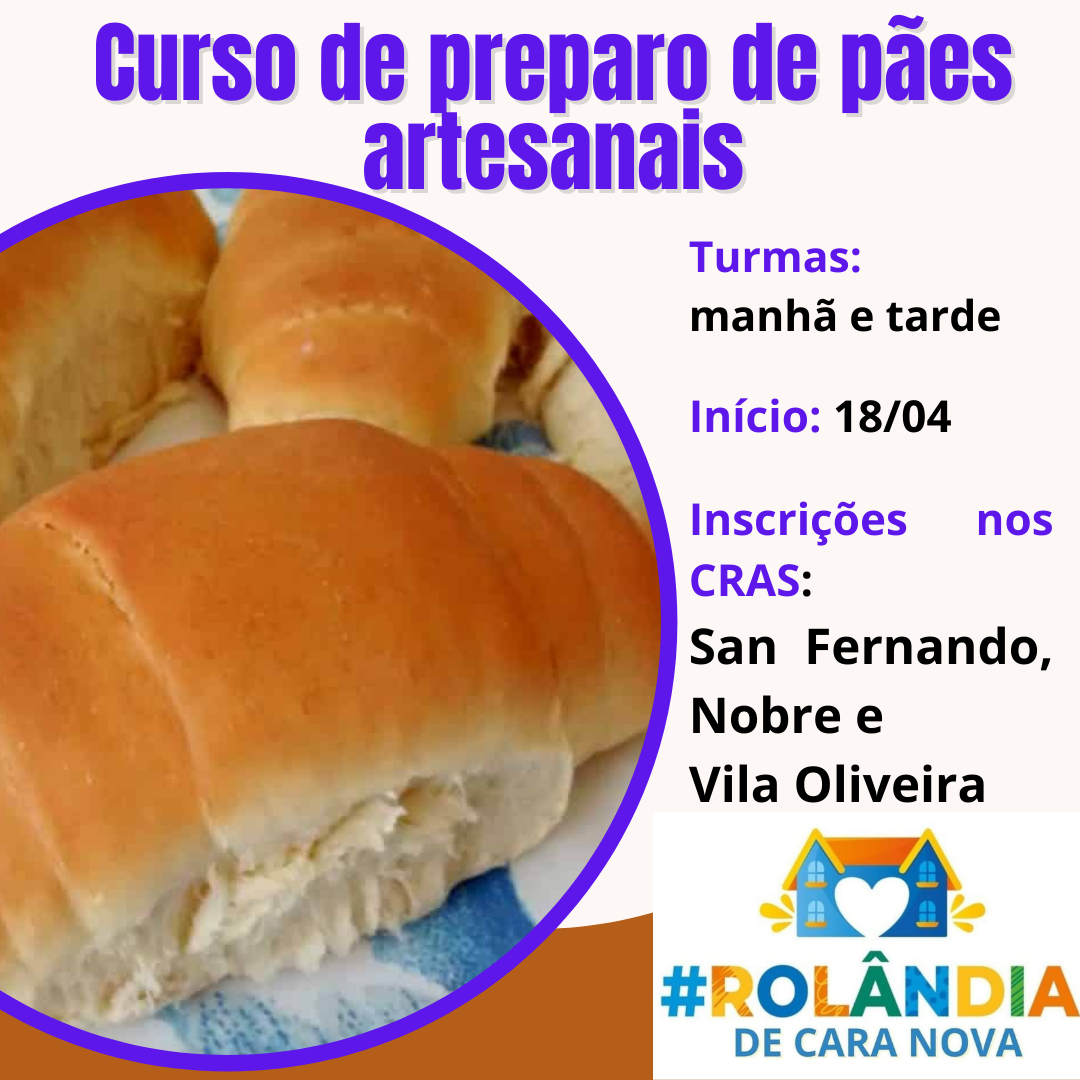 CENTRAL DE CURSOS INFORMA: CURSO DE PREPARO DE PÃES ARTESANAISA secretaria de Assistência Social informa sobre o curso de "Preparo de pães artesanais", dentro da Central Municipal de Cursos. Inscrições abertas nos três CRAS da cidade (San Fer...