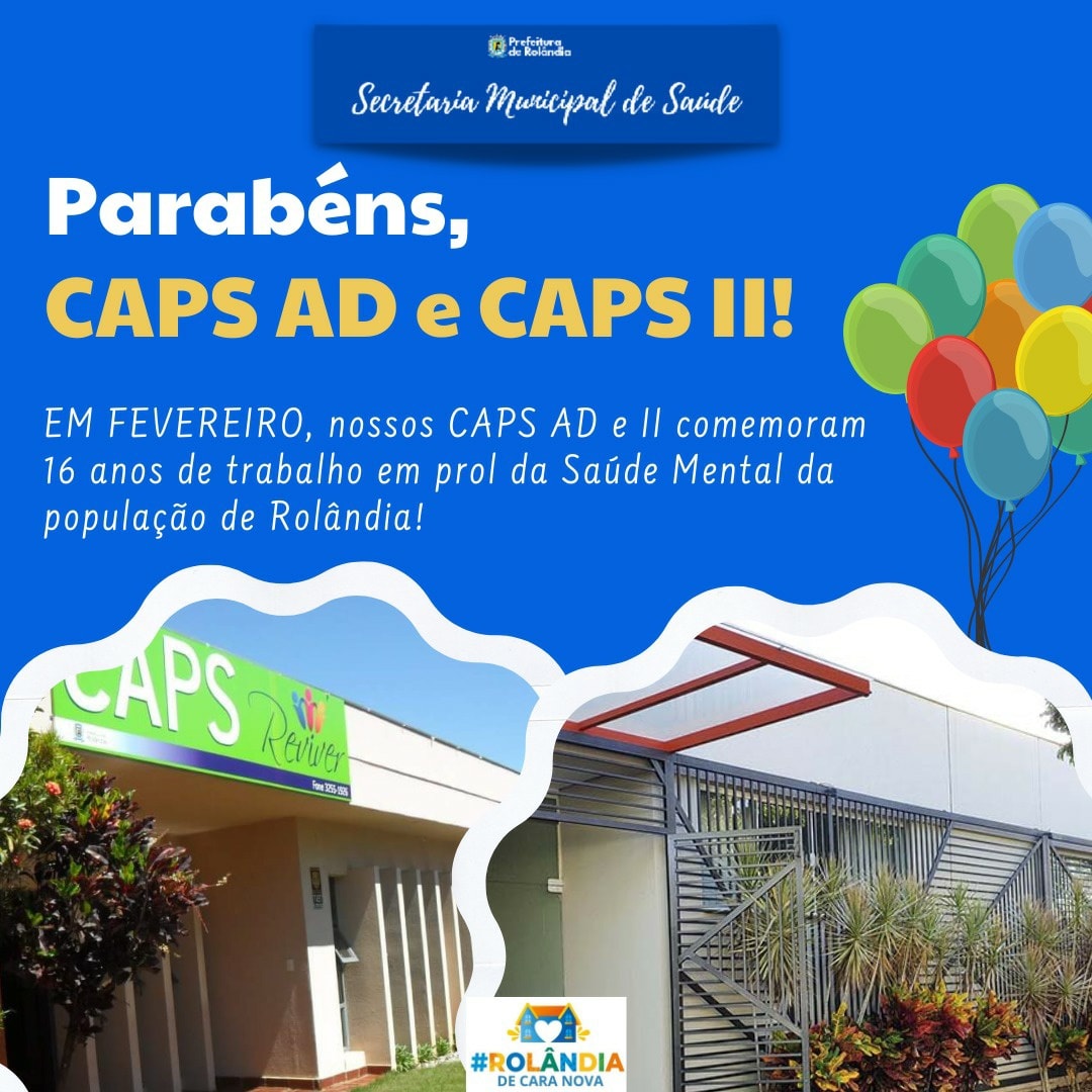 *No mês de fevereiro comemora-se o aniversário de dois importantes serviços de Saúde Mental do município de Rolândia!!*Há 16 anos o Centro de Atendimento Psicossocial em Álcool e outras Drogas ( *CAPS-AD Reviver* ) e o Centro de Atendimento P...
