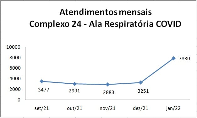 CONSULTAS NO COMPLEXO 24H AUMENTARAM 240% EM JANEIROA secretaria de Saúde informa que no mês de janeiro de 2022 foi constatado um aumento exponencial na procura do atendimento médico devido a síndromes respiratórias no Complexo 24h, da Vila Oliv...