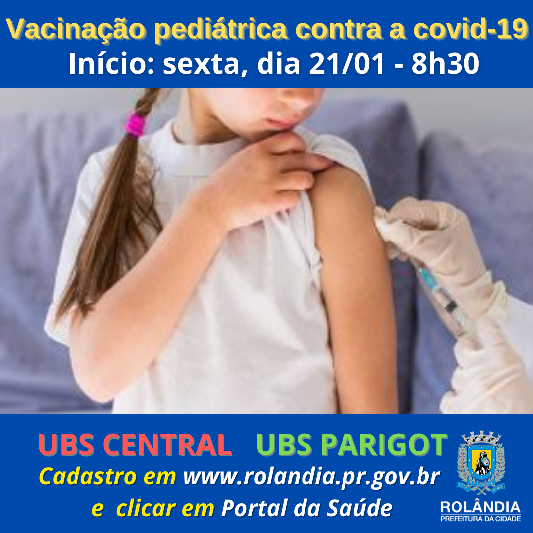 VACINAÇÃO PEDIÁTRICA CONTRA A COVID-19 VAI COMEÇAR NESTA SEXTAA Secretaria Municipal de Saúde de Rolândia abriu cadastro para que crianças com idade entre 5 e 11 anos se habilitem a receber a dose da vacina contra a covid-19.A vacinação pedi...