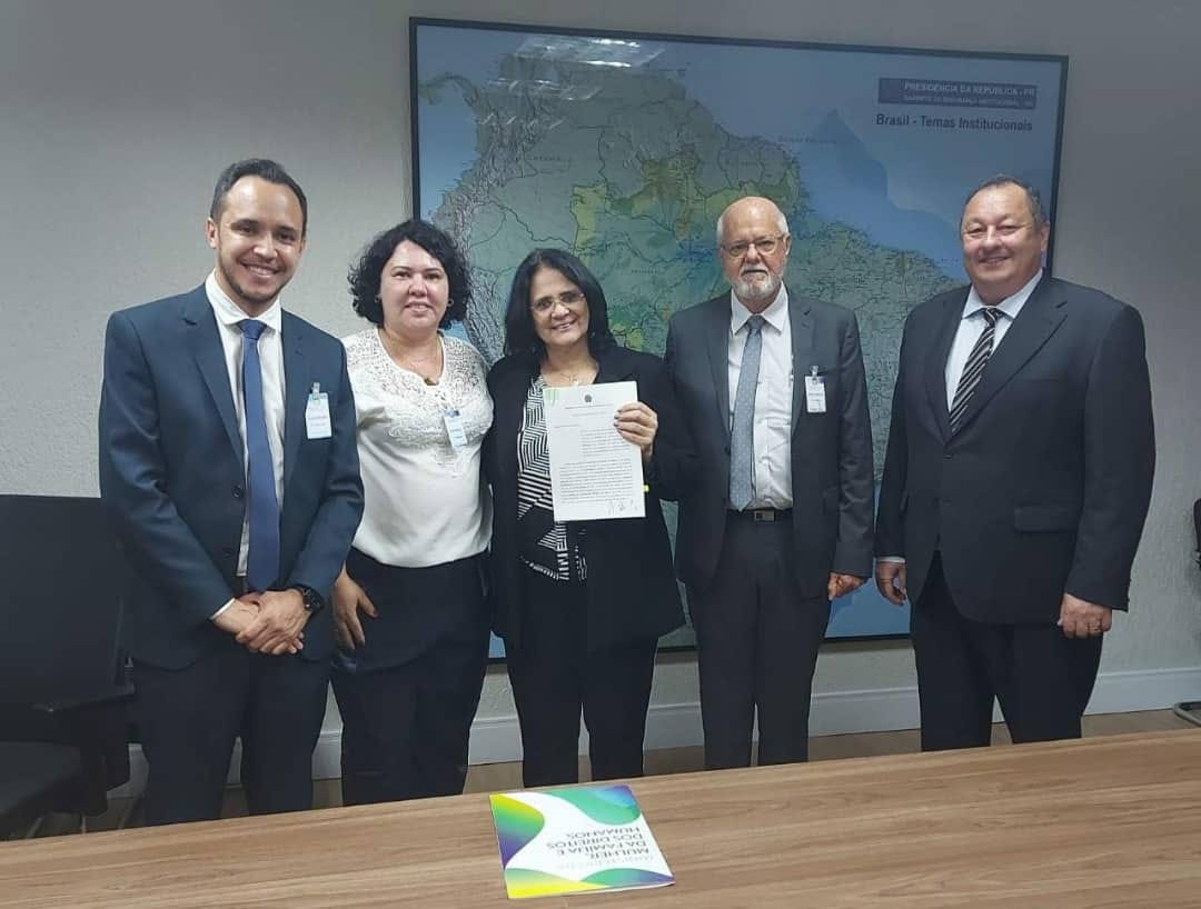 O prefeito Ailton Maistro, o secretário de Assistência Social, Diego Silva, e a diretora de Proteção Especial, da secretaria de Assistência Social, Fernanda Buranello, assinaram nesta segunda-feira, dia 29, em Brasília com a presença da Minist...