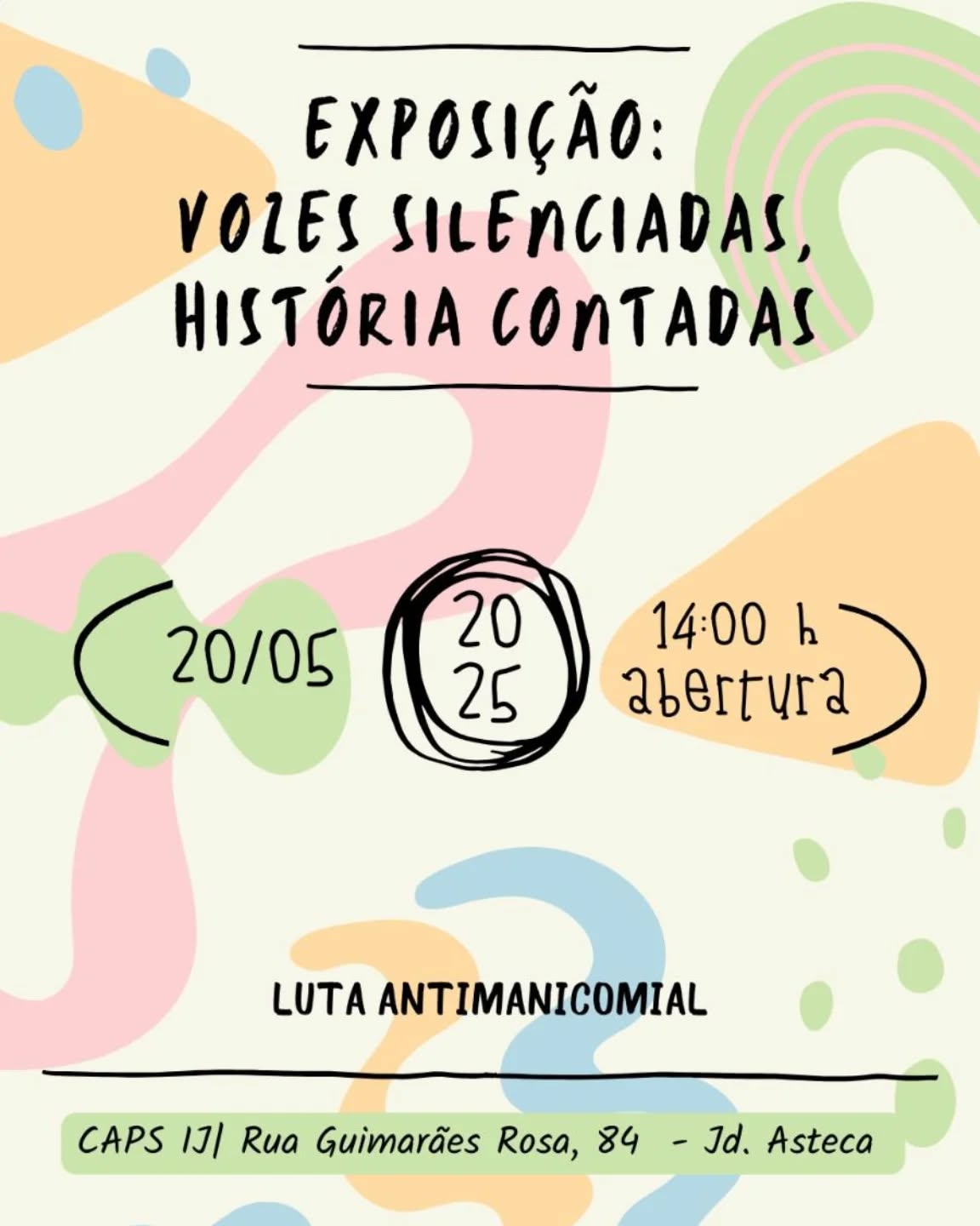 CAPS INFANTO JUVENIL CONVIDA A POPULAÇÃO A PRESTIGIAR EXPOSIÇÃO "VOZES SILENCIOSAS, HISTÓRIAS CONTADAS" Dia 20, terça-feira, a partir das 14h, no CAPS, situado na Rua Guimarães Rosa, 84, Jardim Aste...