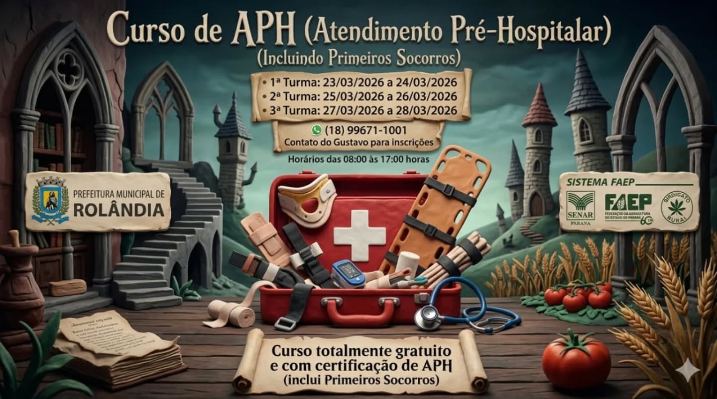 Curso gratuito e com certificado sobre primeiros socorros! O Sindicato Rural Patronal e a Central Municipal de Cursos, por meio das secretarias de Desenvolvimento Econômico e de Assistência Social informam que estão abertas insc...