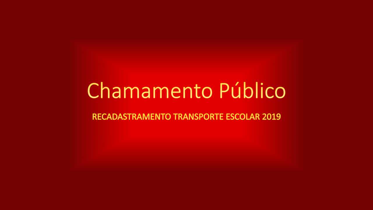 A Secretaria Municipal de Educação informa sobre o Chamamento Público para recadastramento de utilização do Transporte Escolar Municipal. Clique e confira os critérios. Fique atento para a data para cada tipo de aluno: ALUNOS DA ZONA URBANA...