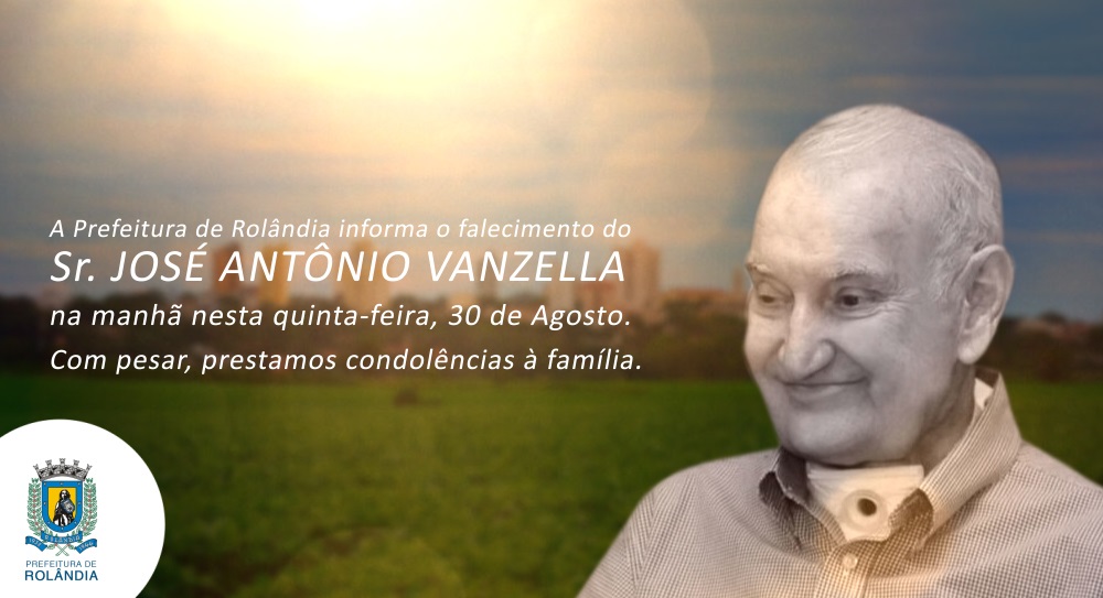 A Prefeitura de Rolândia vem por meio desta nota, informar o falecimento do Sr. José Antônio Vanzella, 74 anos, na manhã desta quinta-feira, 30 de agosto. Sr. "Nico" Vanzella, como era popularmente conhecido esteve atuando frente a um grupo emp...