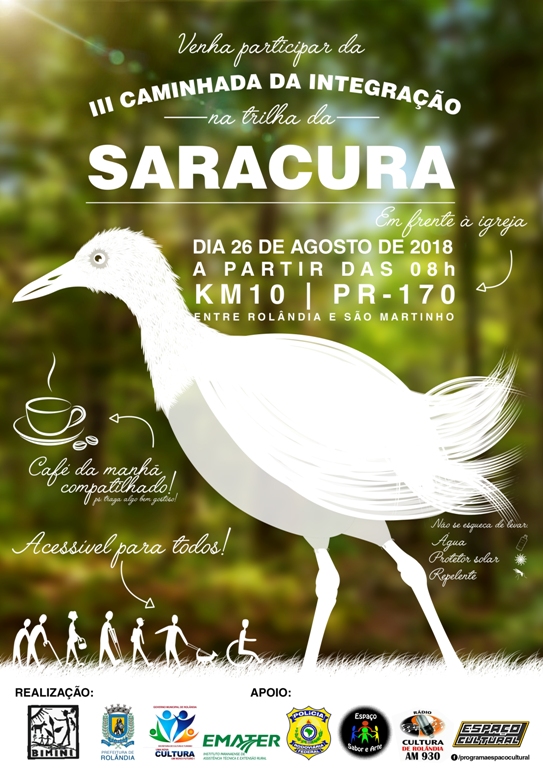 A Secretaria de Cultura e Turismo tem a honra de convidar a participar do evento ”CAMINHADA ECOLÓGICA DA INTEGRAÇÃO”, a ser realizada no dia 26 de agosto de 2018 (Domingo), a partir das&...