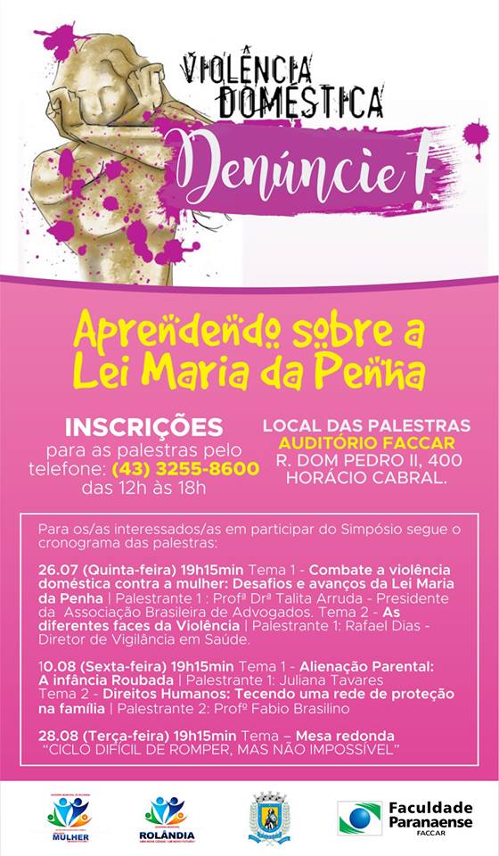 O I Simpósio “Muitas lutas, muita resistência, muitos caminhos: aprendendo sobre a Lei Maria da Penha” organizado pela Prefeitura de Rolândia e Secretaria da Mulher e da Família com apoio da FACCAR tem como objetivo propiciar aos cidadãos ...