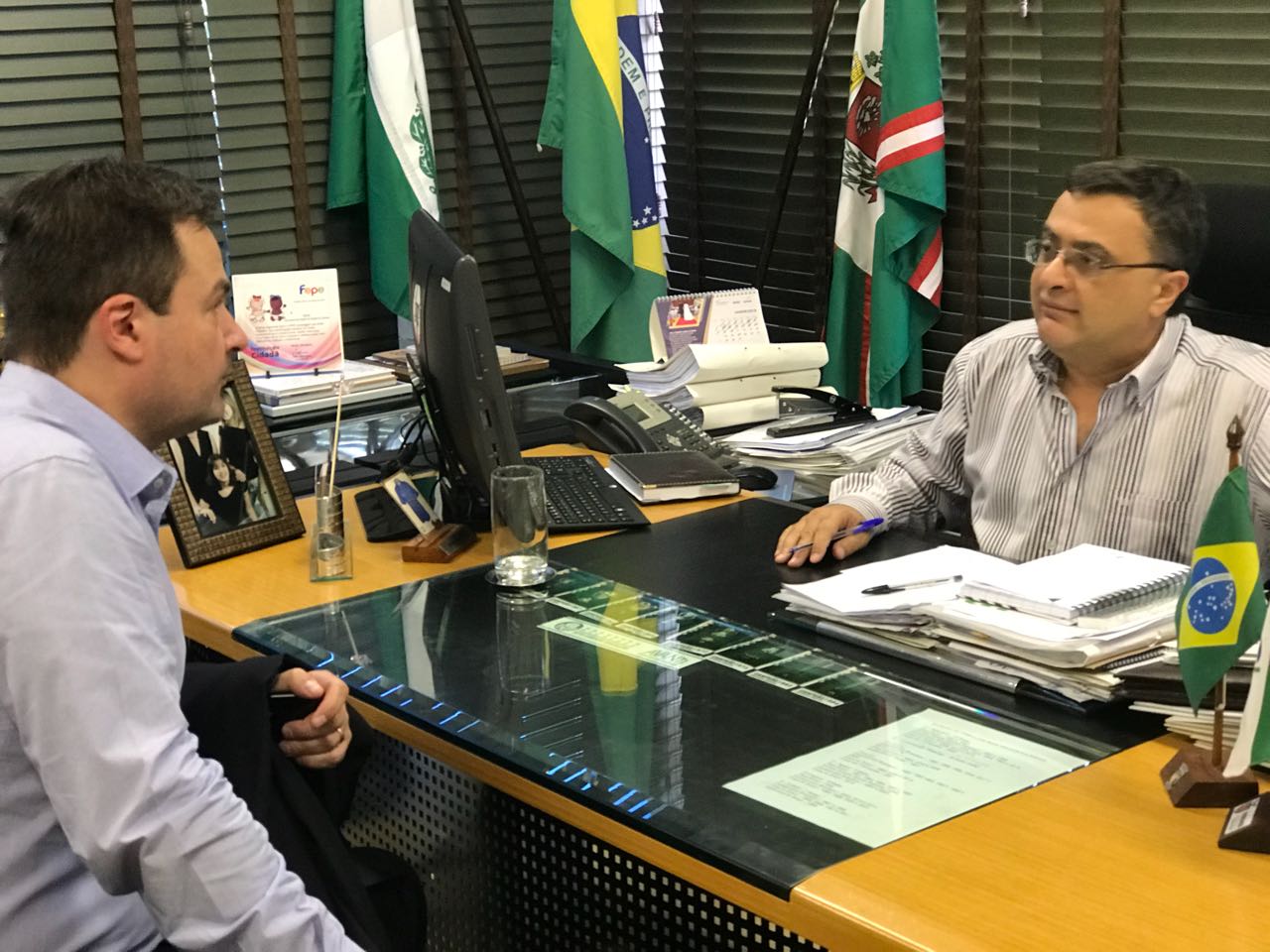 O Prefeito Doutor Francisconi recebeu em seu gabinete a visita do Deputado Federal Luiz Carlos Hauly. Na ocasião, conversaram sobre trabalhos e projetos para esse ano para a cidade. O Chefe de Gabinete Victor Garcia, os Secretários de Compras, Patr...