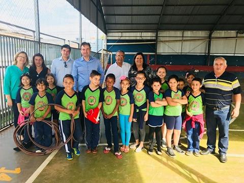 O Prefeito Doutor Francisconi, o Vice-Prefeito Roberto Negrão, o Secretário de Educação Cláudio Pinho, o Chefe de Gabinete Victor Garcia e os Vereadores Eugênio Serpeloni (Presidente da Câmara) Edileine Griggio e Professo...