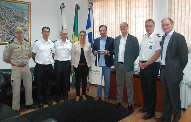 O Secretário de Cultura e Turismo, Fernando Pina, e a Turismóloga da pasta, Flávia Galbero, receberam nesta manhã, das mãos da Diretoria da ACREBI, promotora e organizadora do 4º Concurso de Bandas e Fanfarras (CONFABAN), um prêmio de reconh...