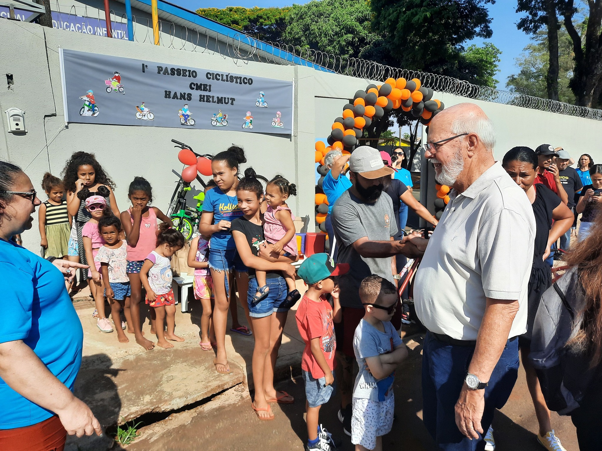 PREFEITO AILTON PRESTIGIA PRIMEIRO PASSEIO CICLÍSTICO DO CMEI HANS HELMUT BEHRENDO prefeito Ailton Maistro, a primeira-dama Ana Maria Mungo Maistro, a secretária de Educação, Leise Camargo, o secretário de Infraestrutura, José Luis Polvani, o s...