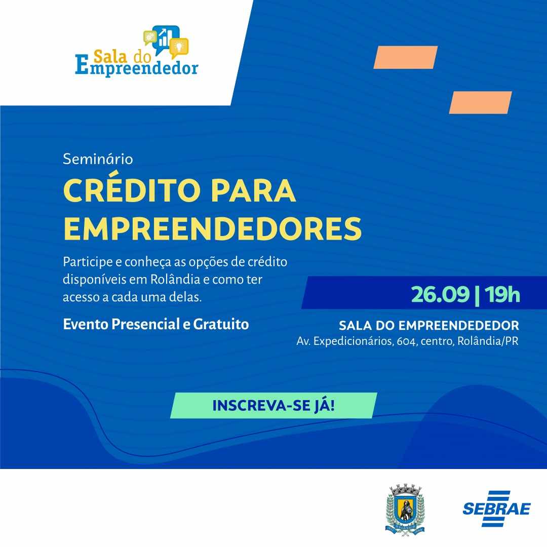 ATENÇÃO MEI´S DE ROLÂNDIA!A Secretaria Municipal de Desenvolvimento Econômico, por meio da Sala do Empreendedor, vai fazer um evento exclusivo para os MEI´s, com o tema "Crédito para Empreendedores".Faça sua inscrição até o dia 22/09/2023 ...