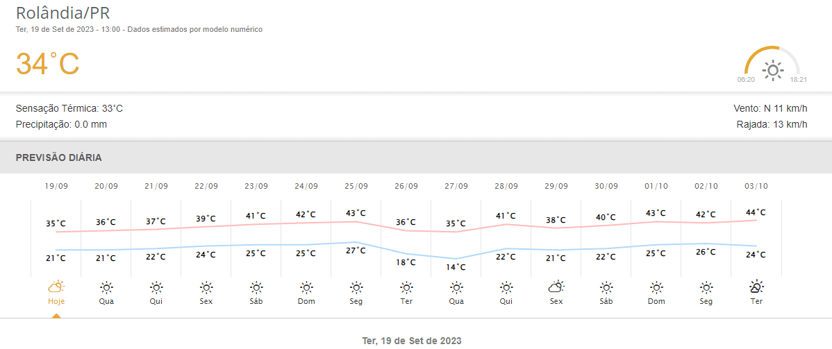 Alerta para todo estado do Paraná, da Defesa Civil Estadual:"Os modelos numéricos de previsão de tempo começaram a indicar, durante os processamentos feitos no final da semana passada, a ocorrência de uma forte onda de calor em parte das Regiõe...