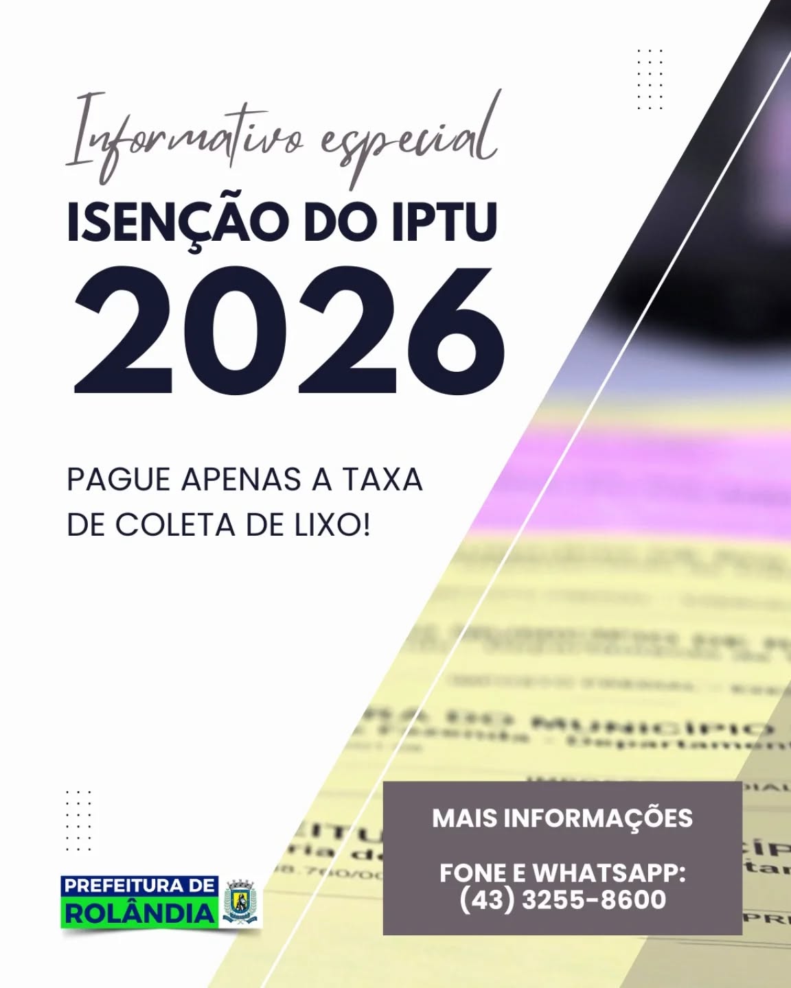 A secretaria de Finanças informa sobre o pedido de isenção do IPTU 2026