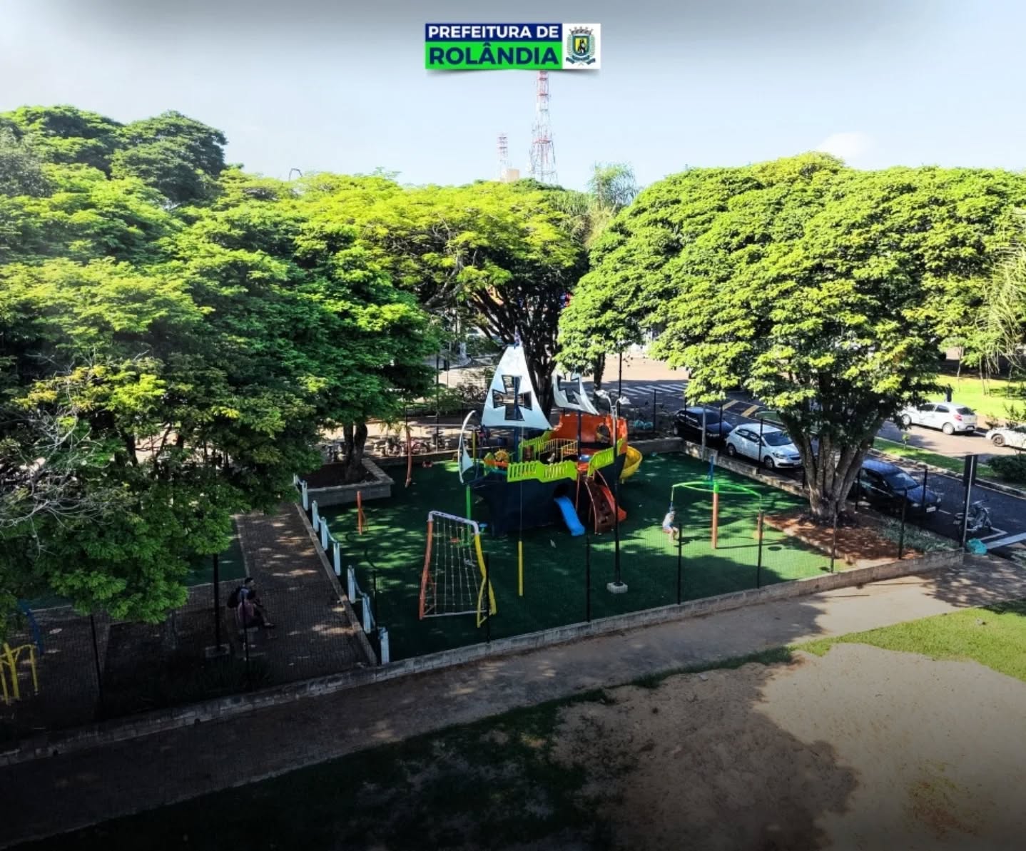 Parque infantil temático da Praça Presidente Tancredo Neves recebe grama sintética