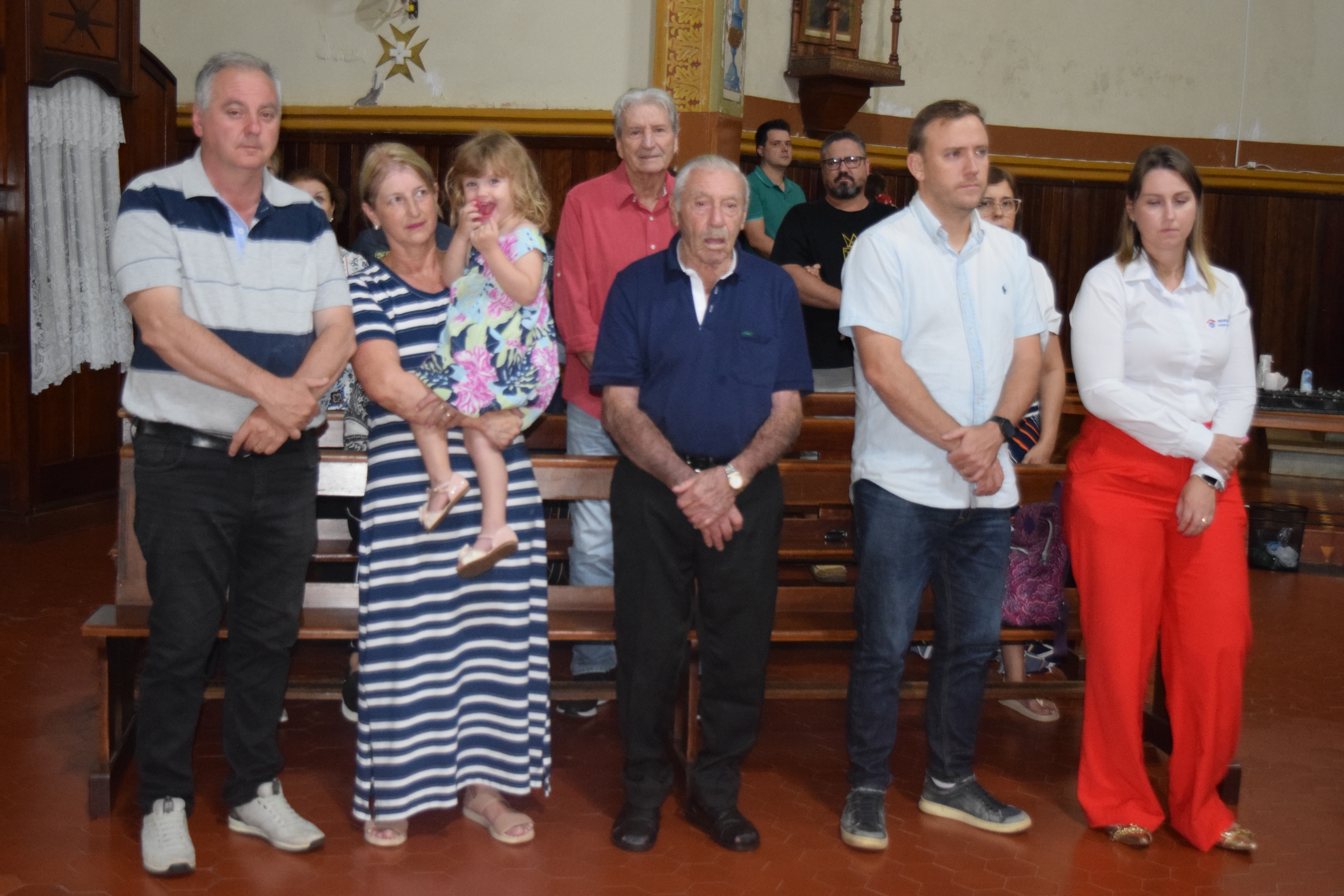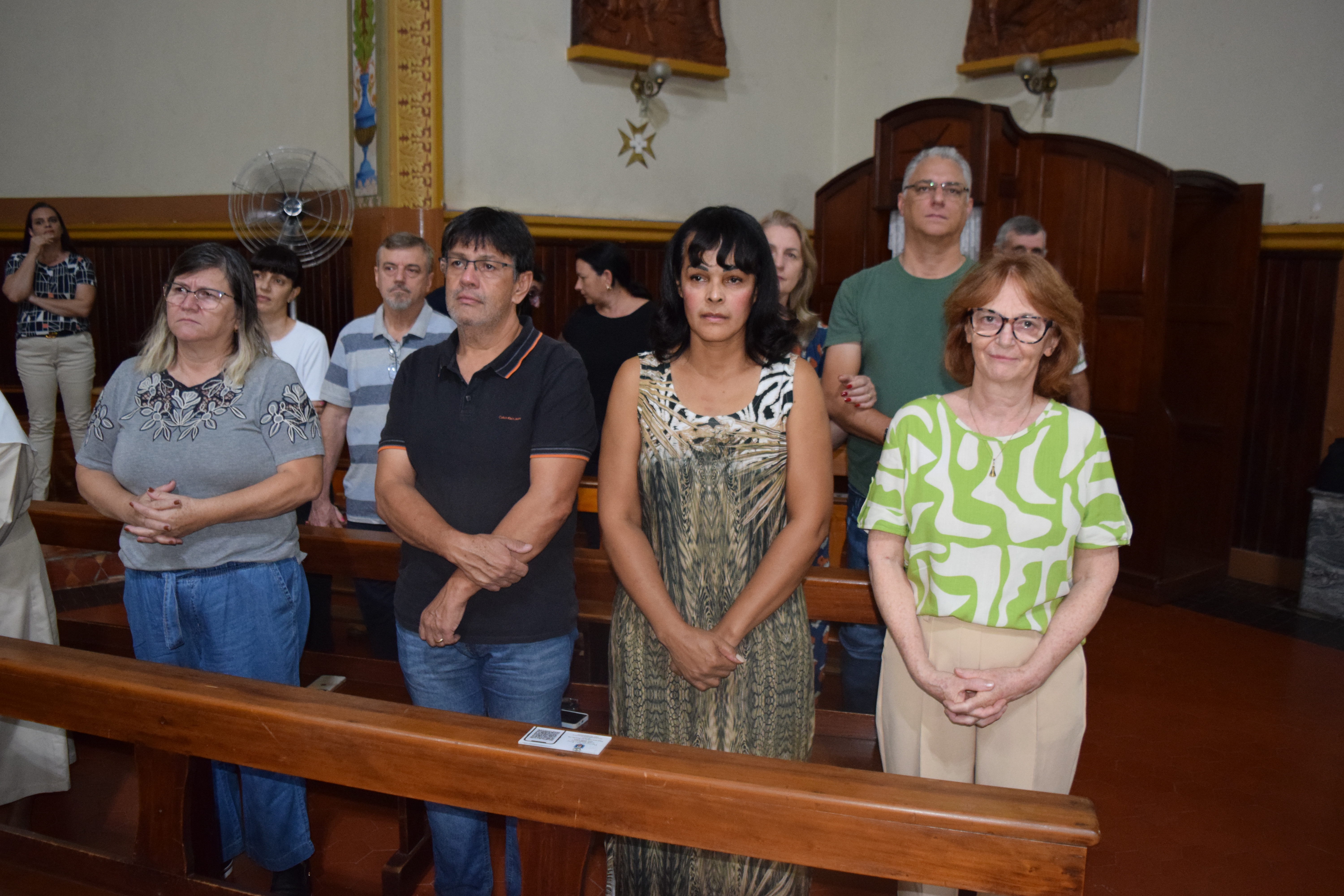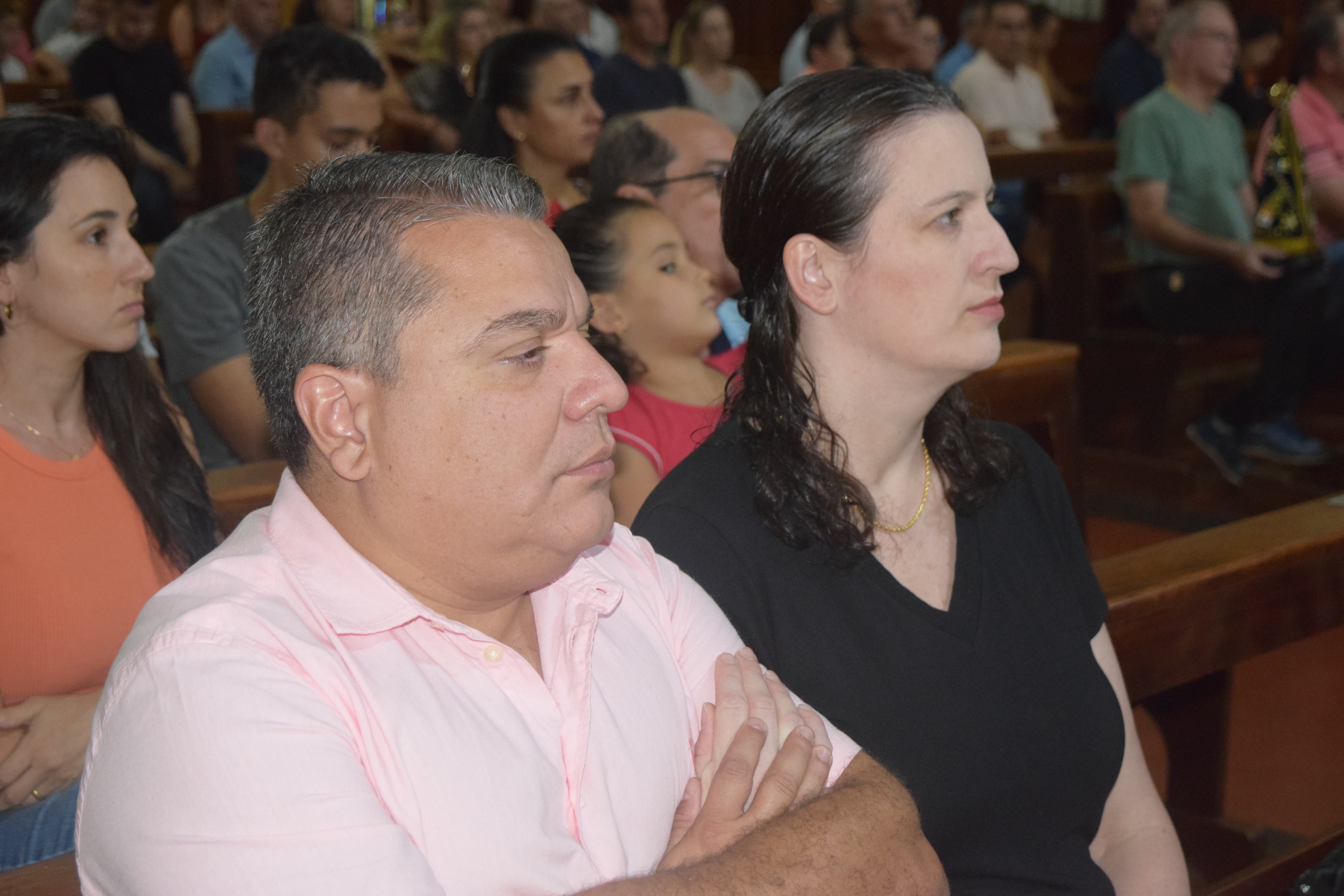 O prefeito Ailton Maistro, a primeira-dama Ana Maria Mungo Maistro, o presidente da Câmara, Reginaldo Silva, o vereador Rodrigão e os secretários de Planejamento, Zeca Salgueiro; de Desenvolvimento Econômico, Horácio Negrão; de Compras, Licitação e Patrimônio, Maria do Carmo Gorla e de Esportes, Odyr Polaco prestigiaram na noite desta quinta-feira (25), uma missa de ação de graças pela realização da AgroFest de 2024.