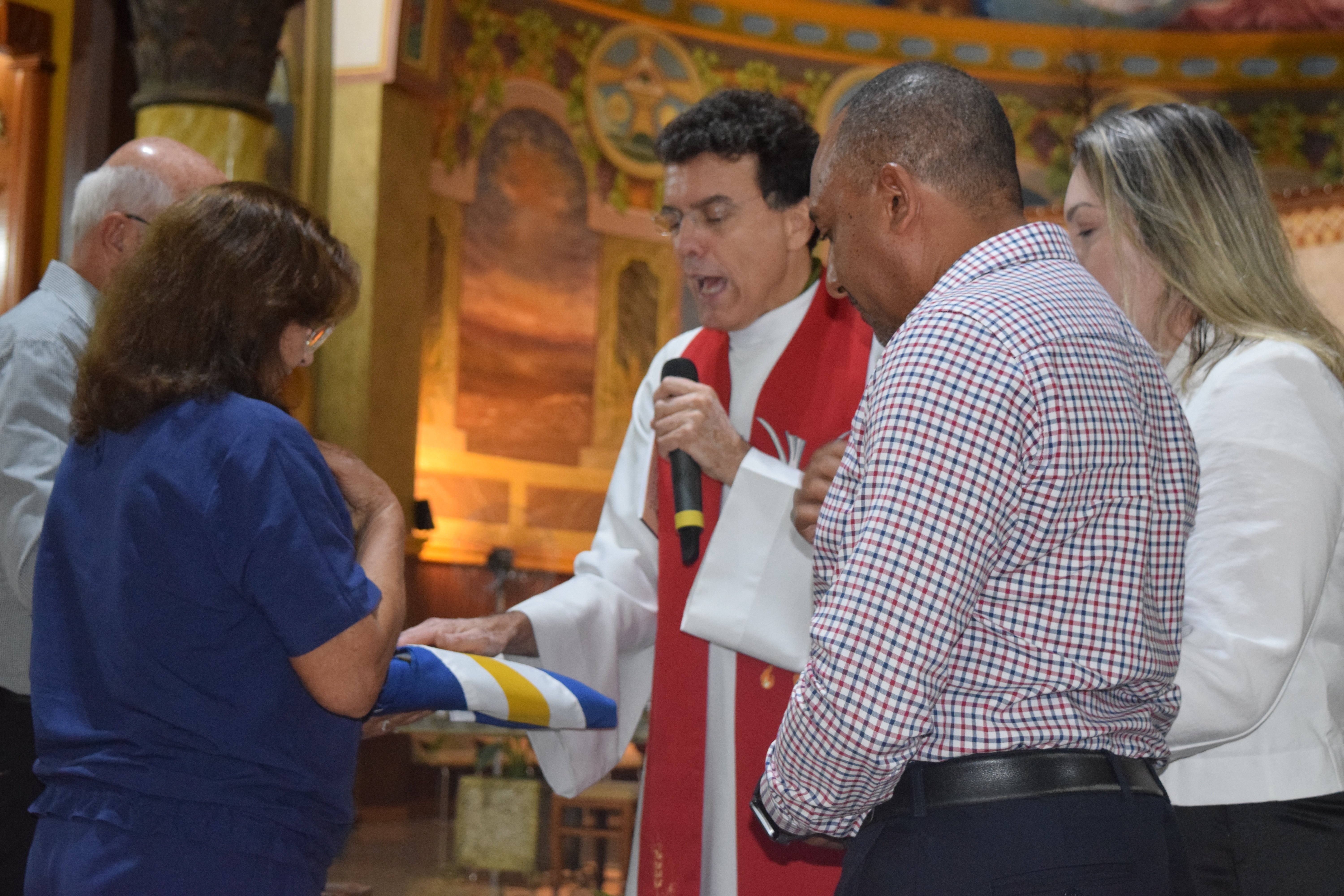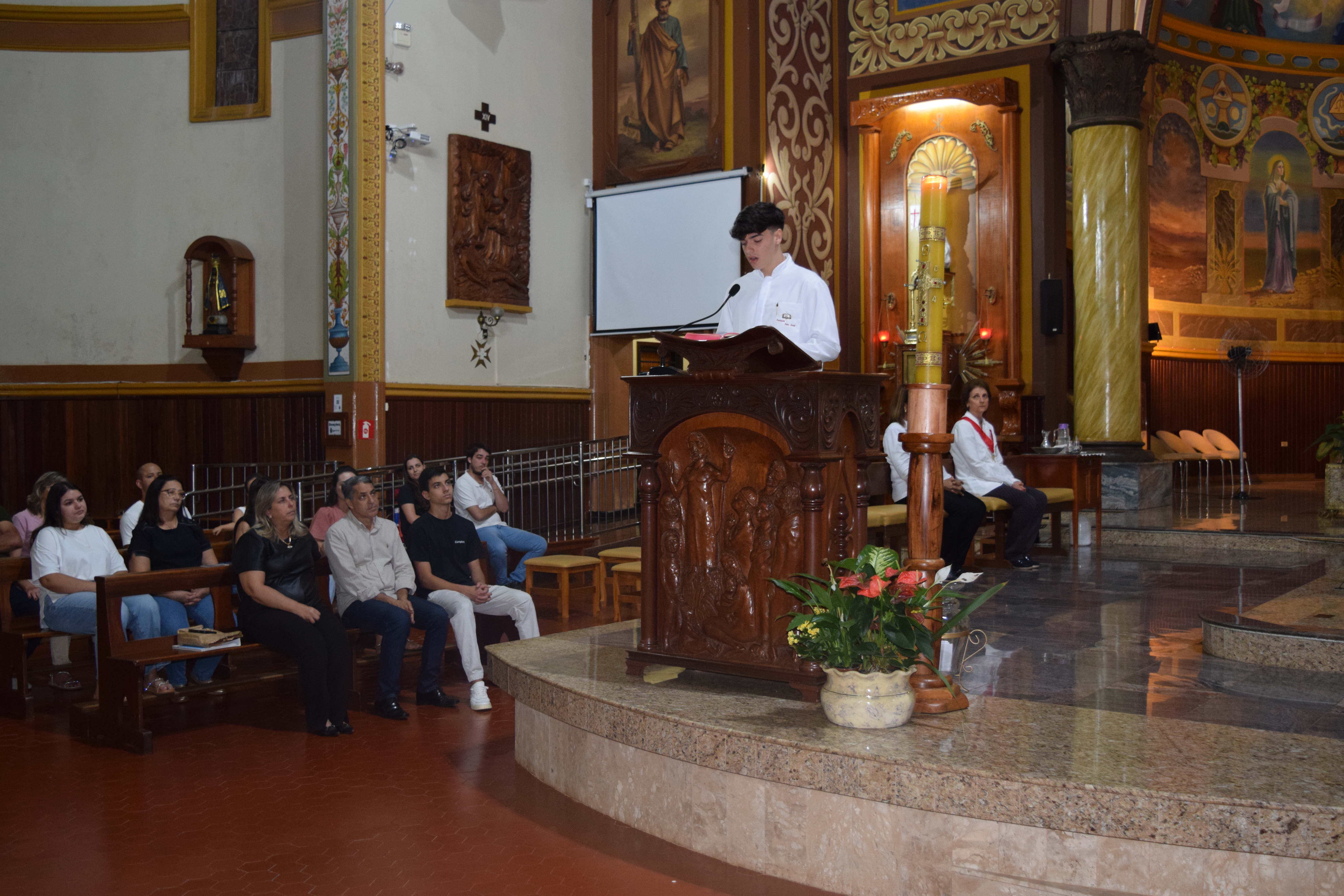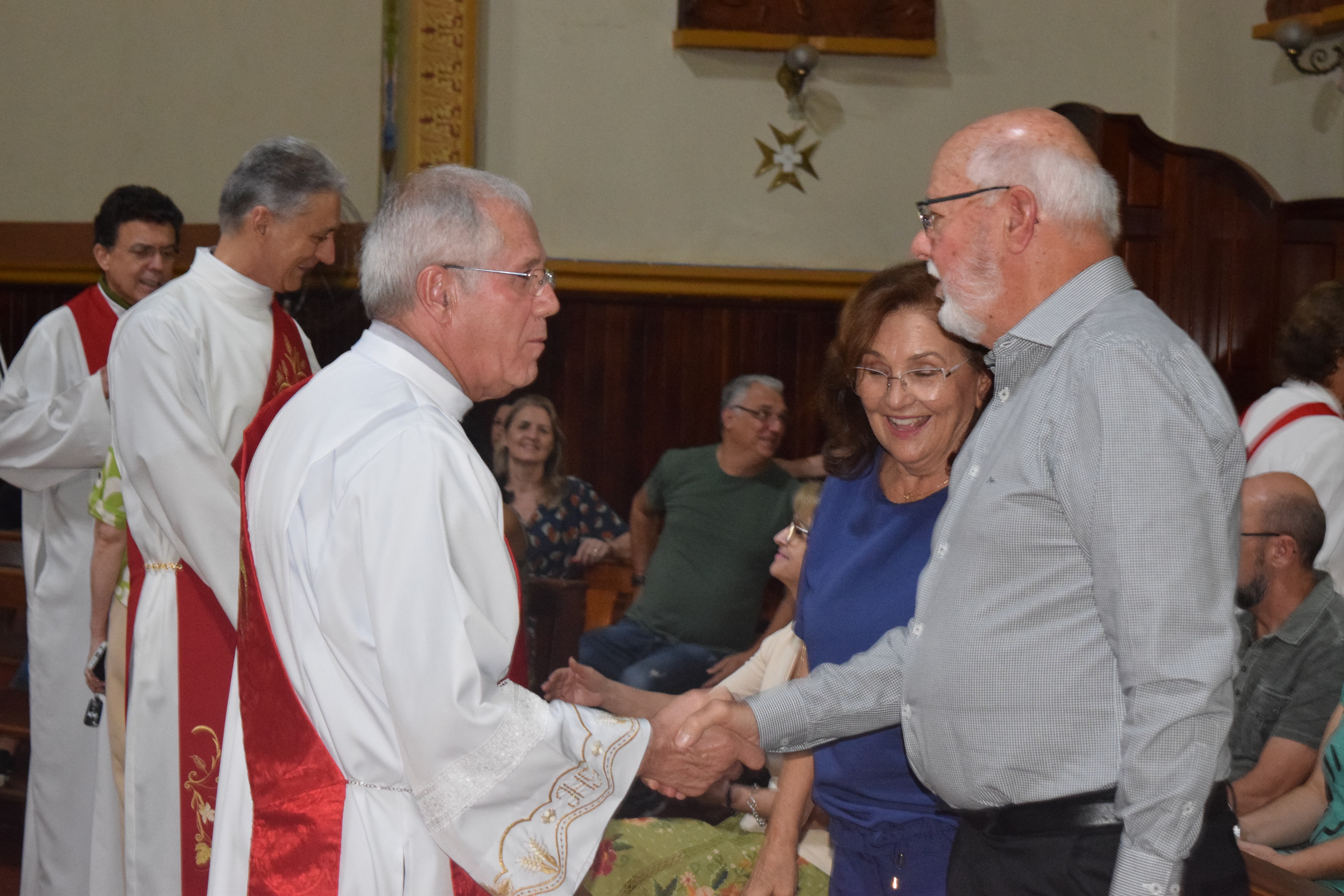 O prefeito Ailton Maistro, a primeira-dama Ana Maria Mungo Maistro, o presidente da Câmara, Reginaldo Silva, o vereador Rodrigão e os secretários de Planejamento, Zeca Salgueiro; de Desenvolvimento Econômico, Horácio Negrão; de Compras, Licitação e Patrimônio, Maria do Carmo Gorla e de Esportes, Odyr Polaco prestigiaram na noite desta quinta-feira (25), uma missa de ação de graças pela realização da AgroFest de 2024.