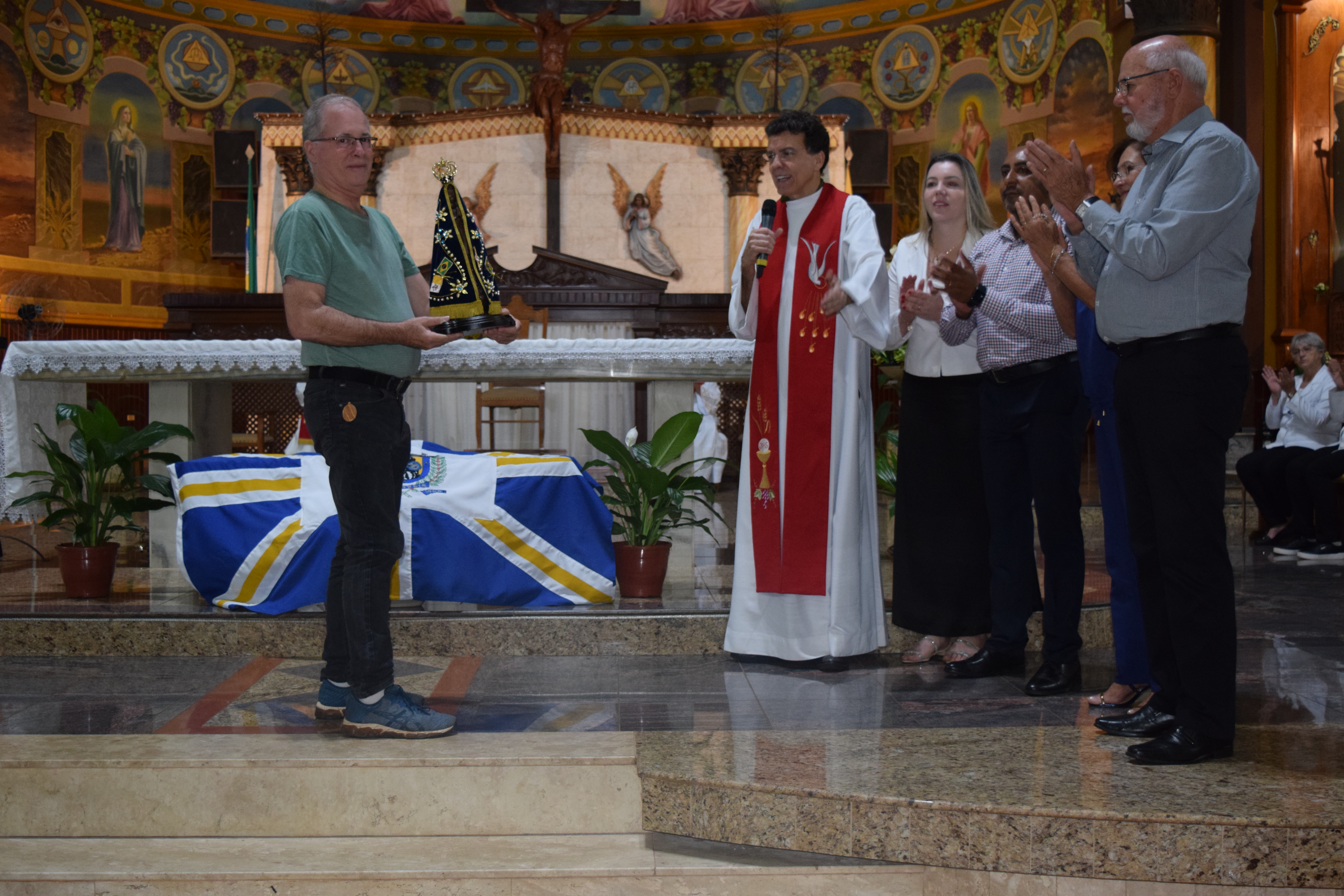Durante a missa especial, a rainha da AgroFest, Franciele Balbino dos Santos, e as princesas Vitória Araújo Domingues e Suzane Weiz Lemes da Silva foram apresentadas após o resultado do concurso.