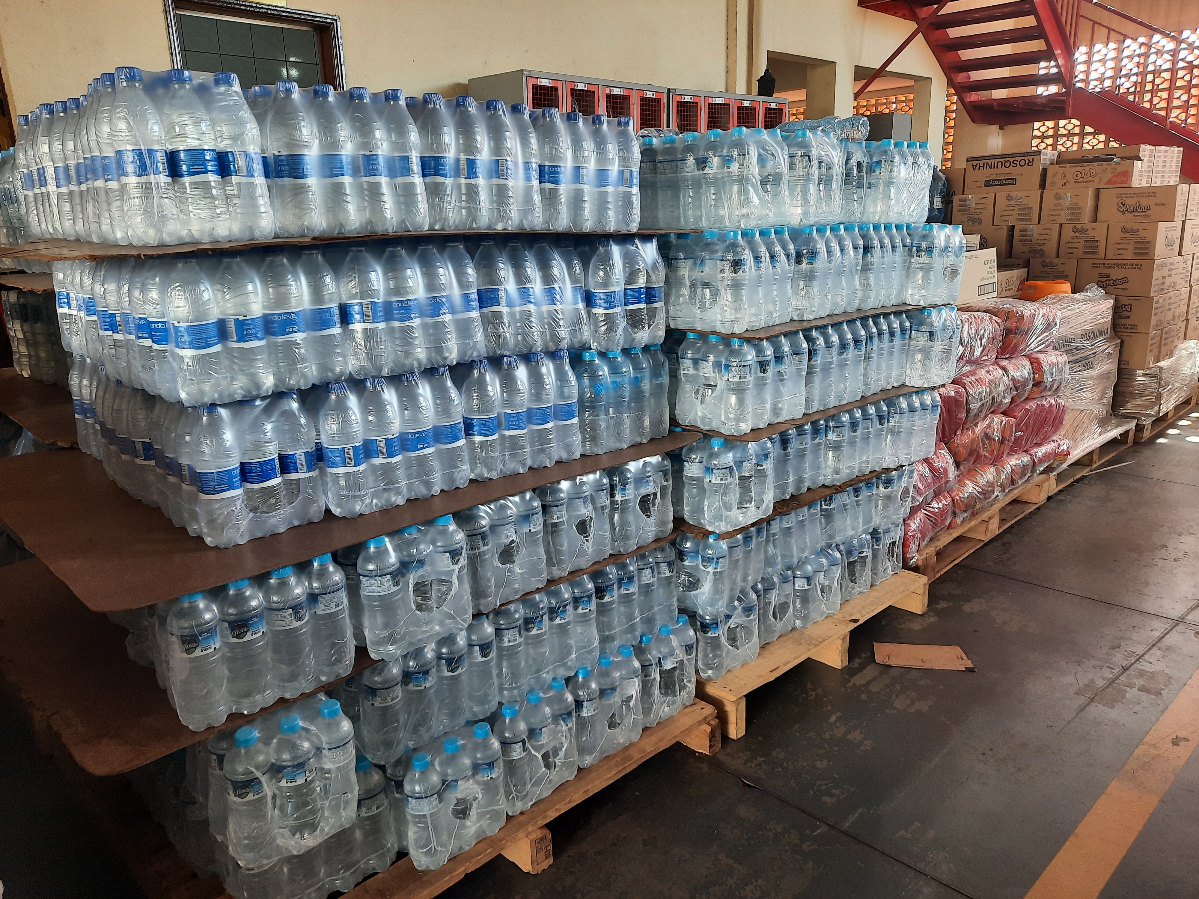 Mais de 18 mil litros de água e mais de seis toneladas de alimentos foram arrecadados até o momento entre outros donativos.