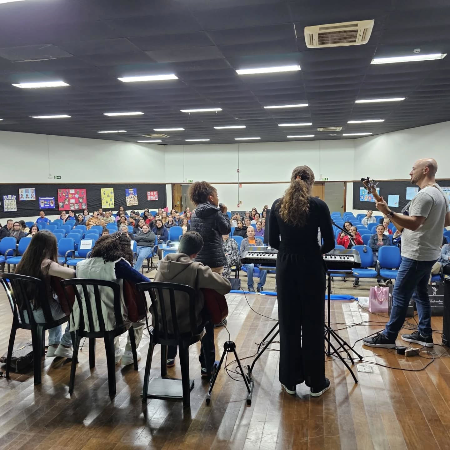 Começou com show musical com os alunos do professor Matheus Vilas Boas, do curso de música, do CRAS do San Fernando. E em seguida, três palestras.
