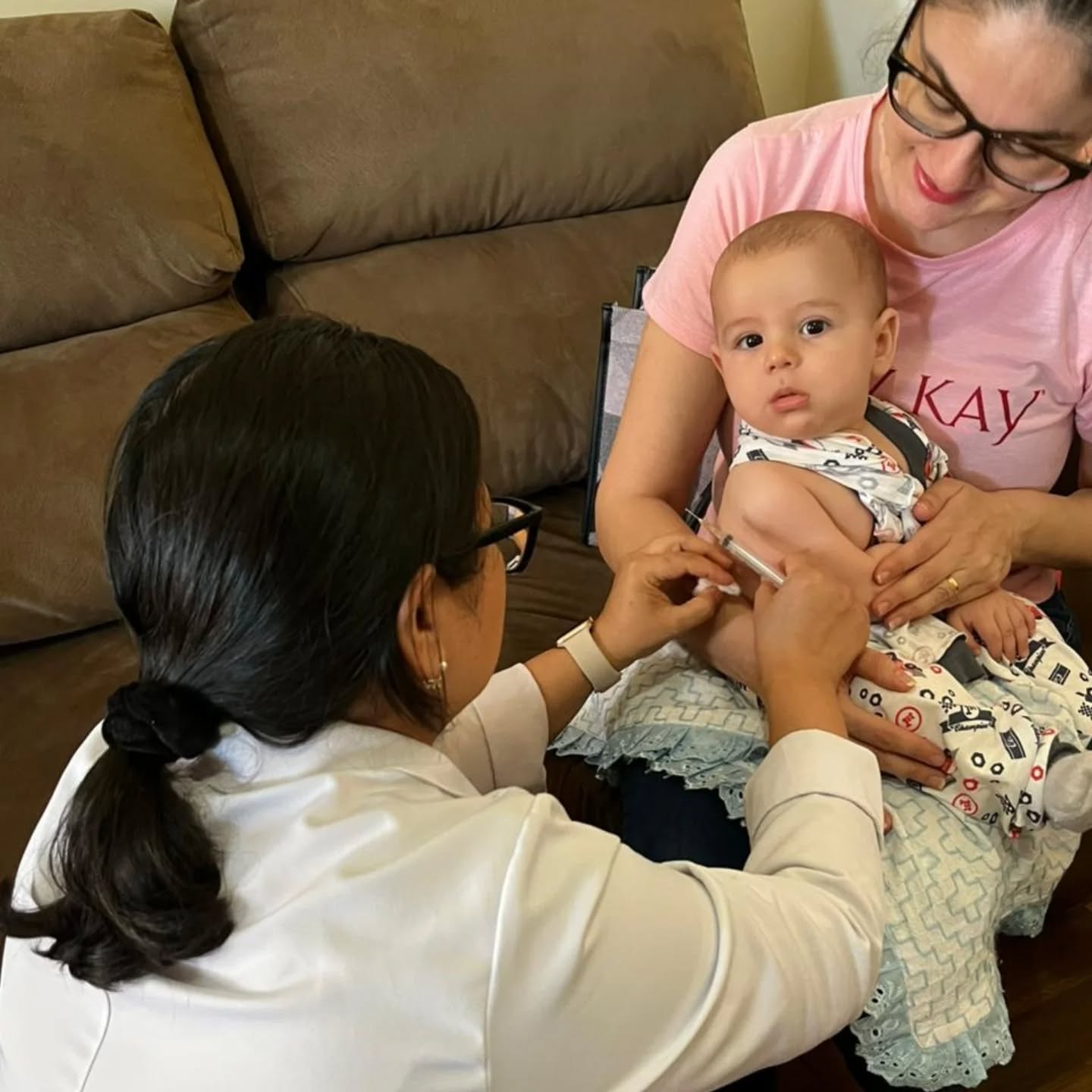 A Secretaria Municipal de Saúde de Rolândia, por meio da UBS Nobre, realizou a vacinação domiciliar de bebês com a dose zero da vacina contra o sarampo, voltada para crianças de 6 meses de idade.