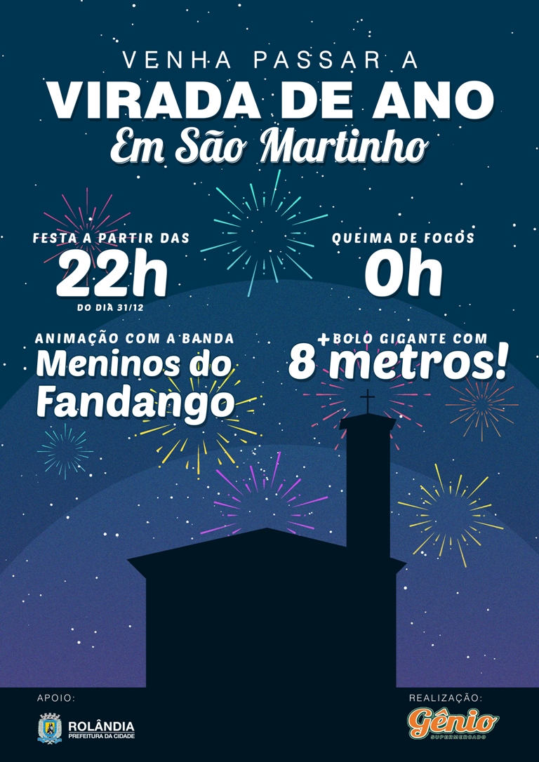 O Distrito de São Martinho vai ter um grande show da virada de ano. Na segunda-feira, dia 31, a partir das 22h, na Praça da Igreja Matriz, com apoio da Subprefeitura de São Martinho e da Secretaria de Cultura e Turismo, animação com a banda "M...