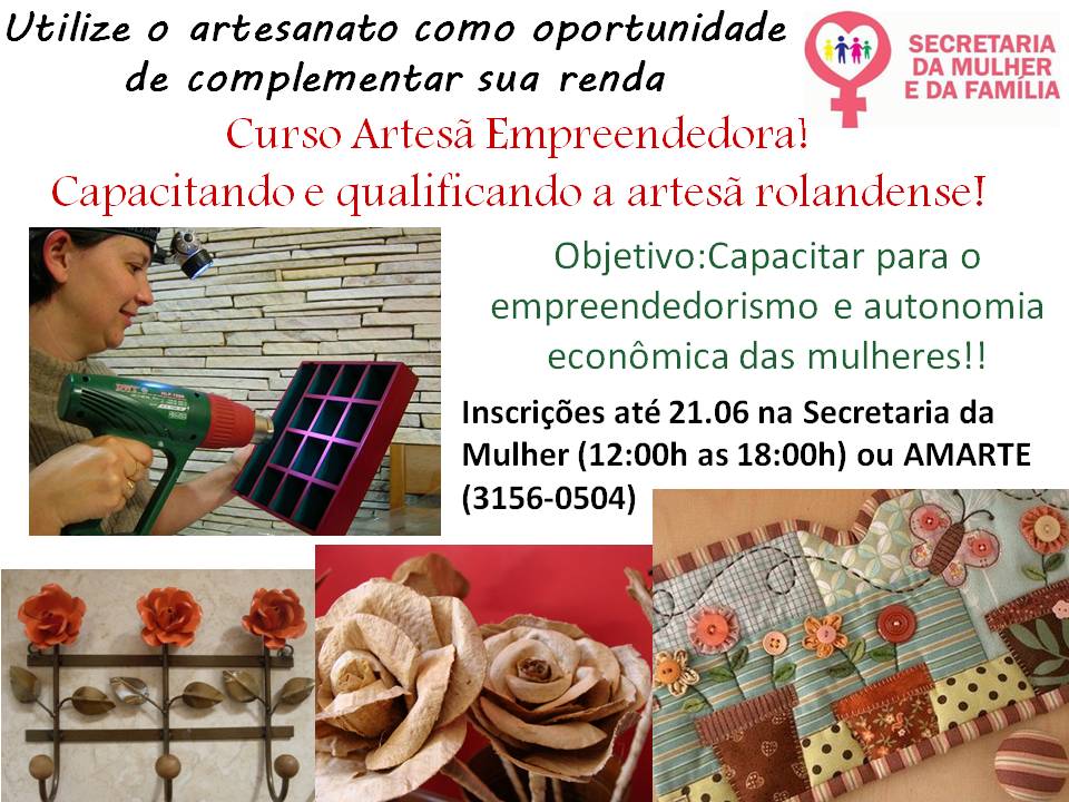 Com duração total de mais de 1000 horas, (junho de 2013 à maio de 2014) o curso é oferecido para a mulher que já faz alguma “arte” e que não teve oportunidade de qualificação, onde ela poderá utilizar o artesanato como forma de com...