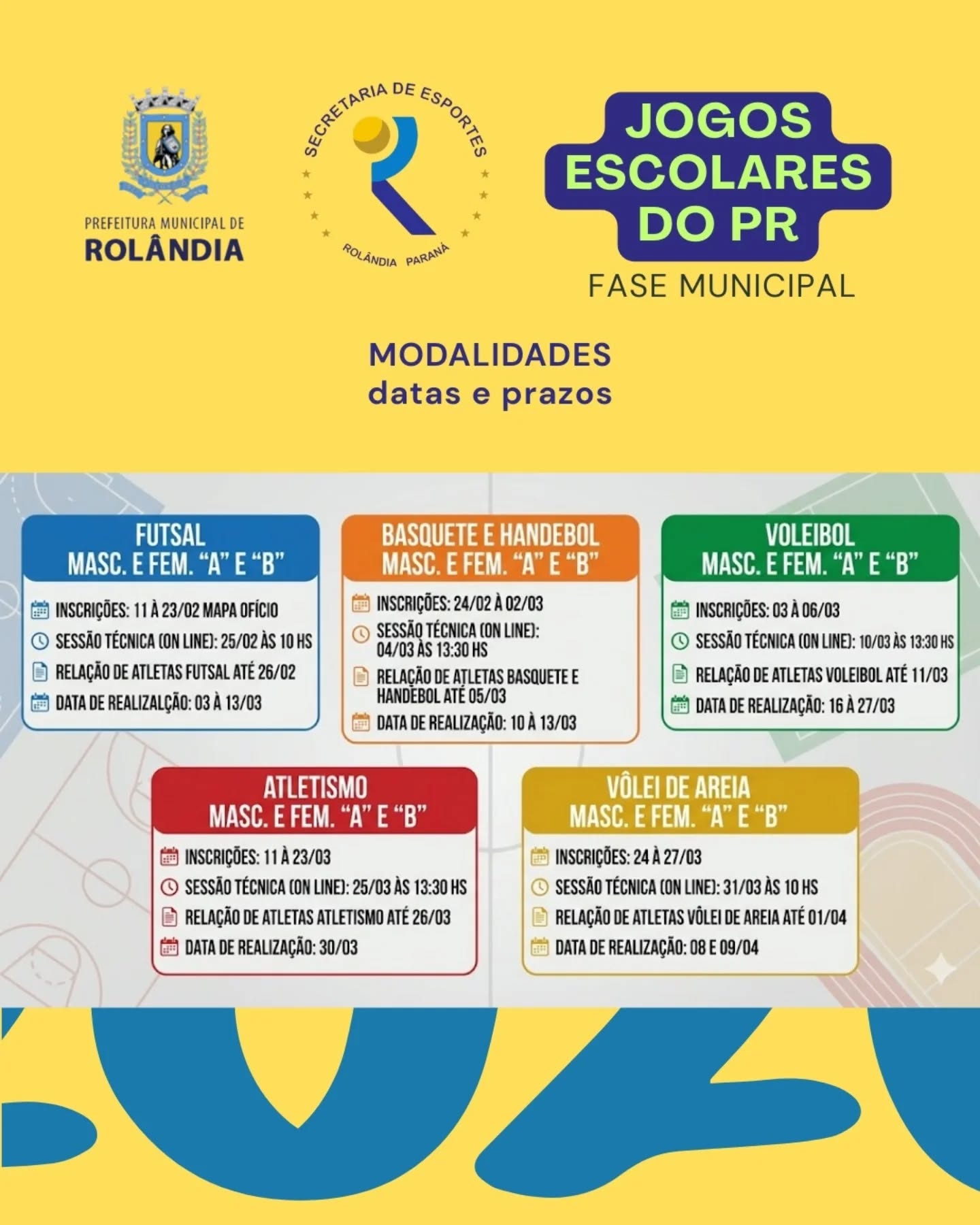 Rolândia vai sediar a fase regional dos JOJUPs A secretaria Estadual do Esporte confirma que a fase regional (R4) dos Jogos da Juventude do Paraná (JOJUPs), em sua 38º edição, vai acontecer em Rolândia no m&ec...