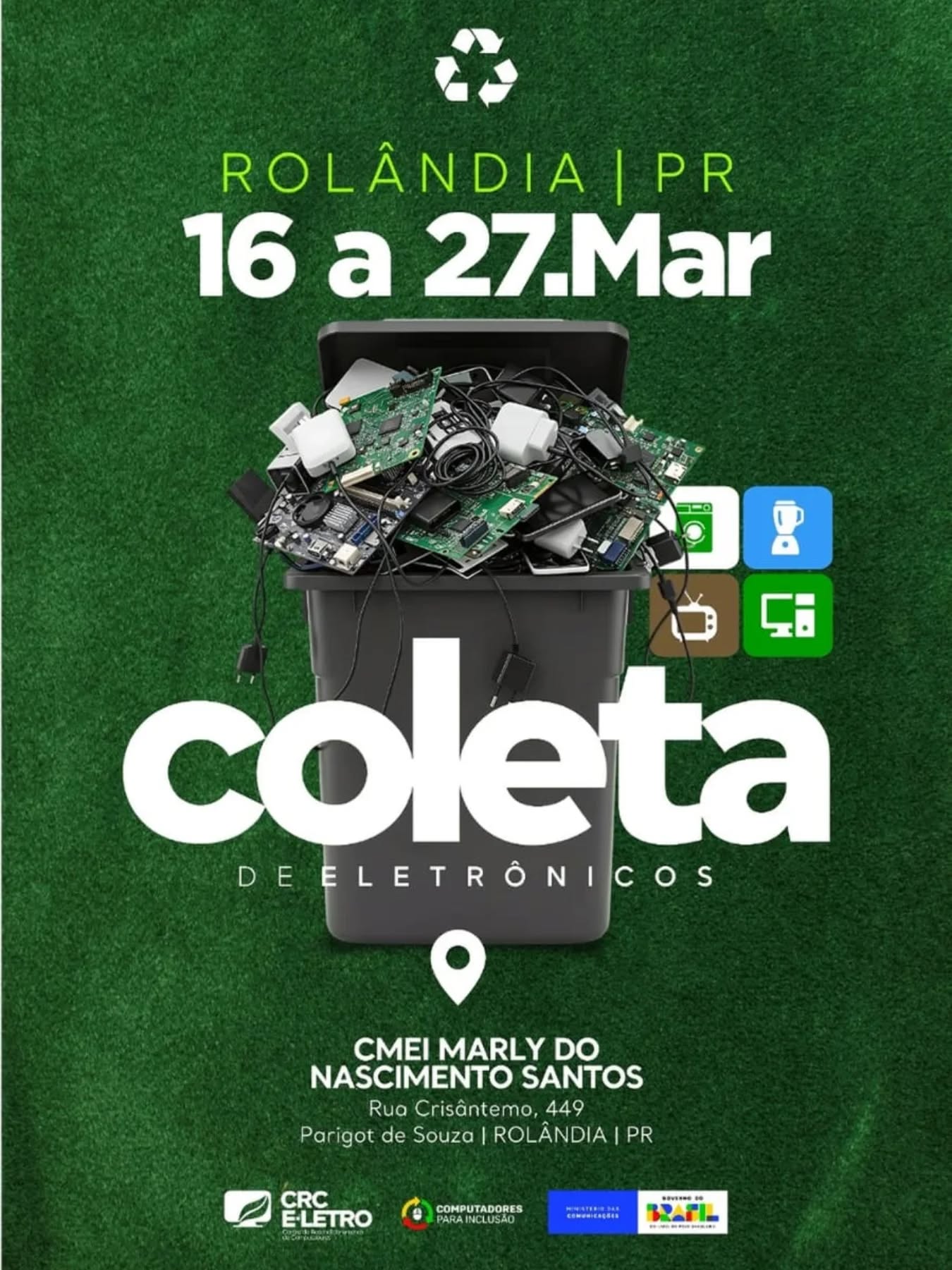 CMEI do Parigot recebe lixo eletrônico até dia 27/03
