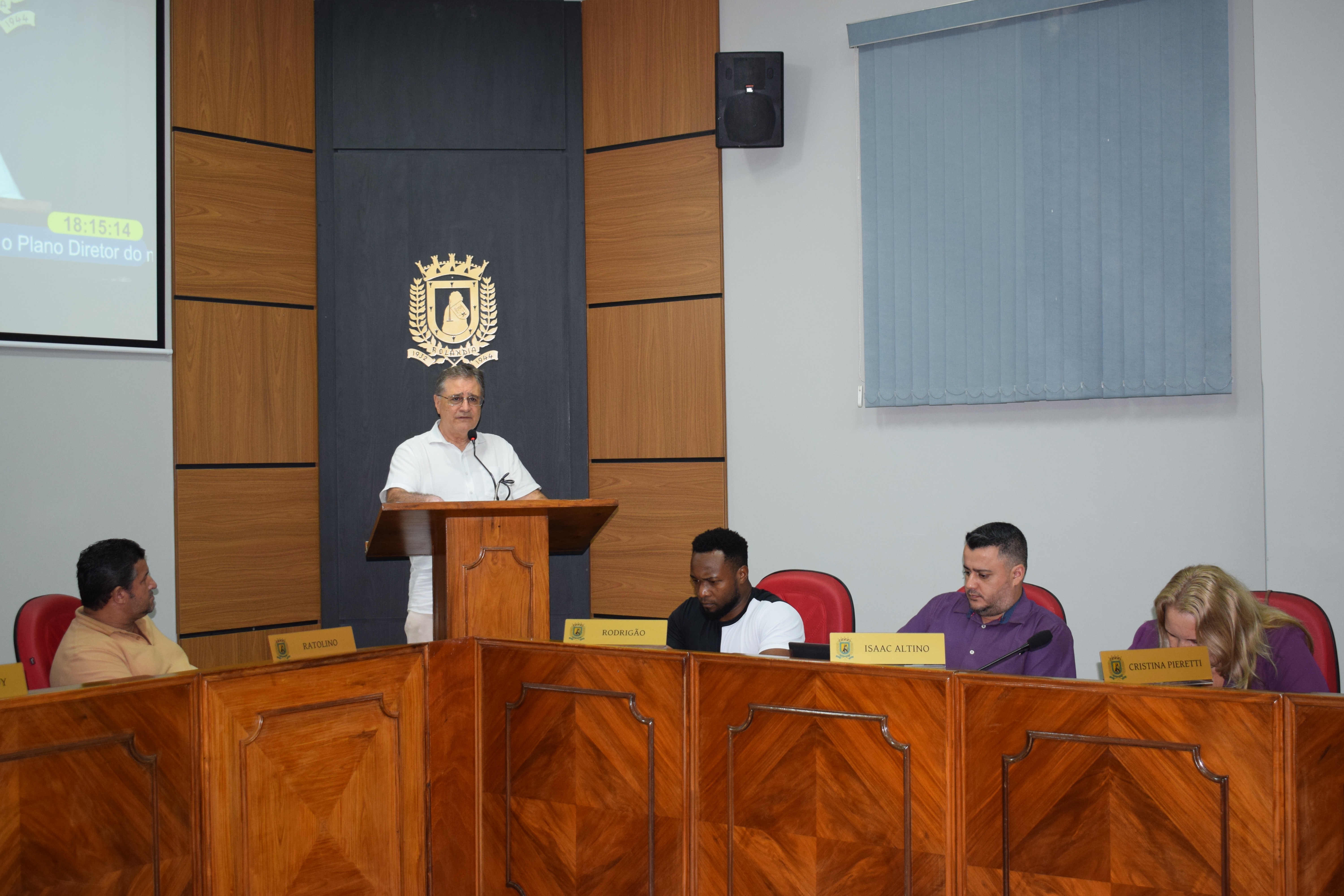 A Câmara Municipal sediou, nesta terça-feira, dia 5, uma audiência pública sobre a lei de revisão do Plano Diretor. O encontro contou com a presença do secretário de Planejamento, Zeca Salgueiro, o secretário de Agricultura e Meio Ambiente, Audinil Maringonda Júnior, o procurador Geral Wilson Sócio Júnior, os vereadores Reginaldo Silva (presidente da Câmara) Andrezinho da Farmácia, Cristina Pieretti, Isaac Altino, Ratolino, Rodrigão, Vilmar Boy e Sandro Leonardi, além de servidores municipais e da comunidade em geral.