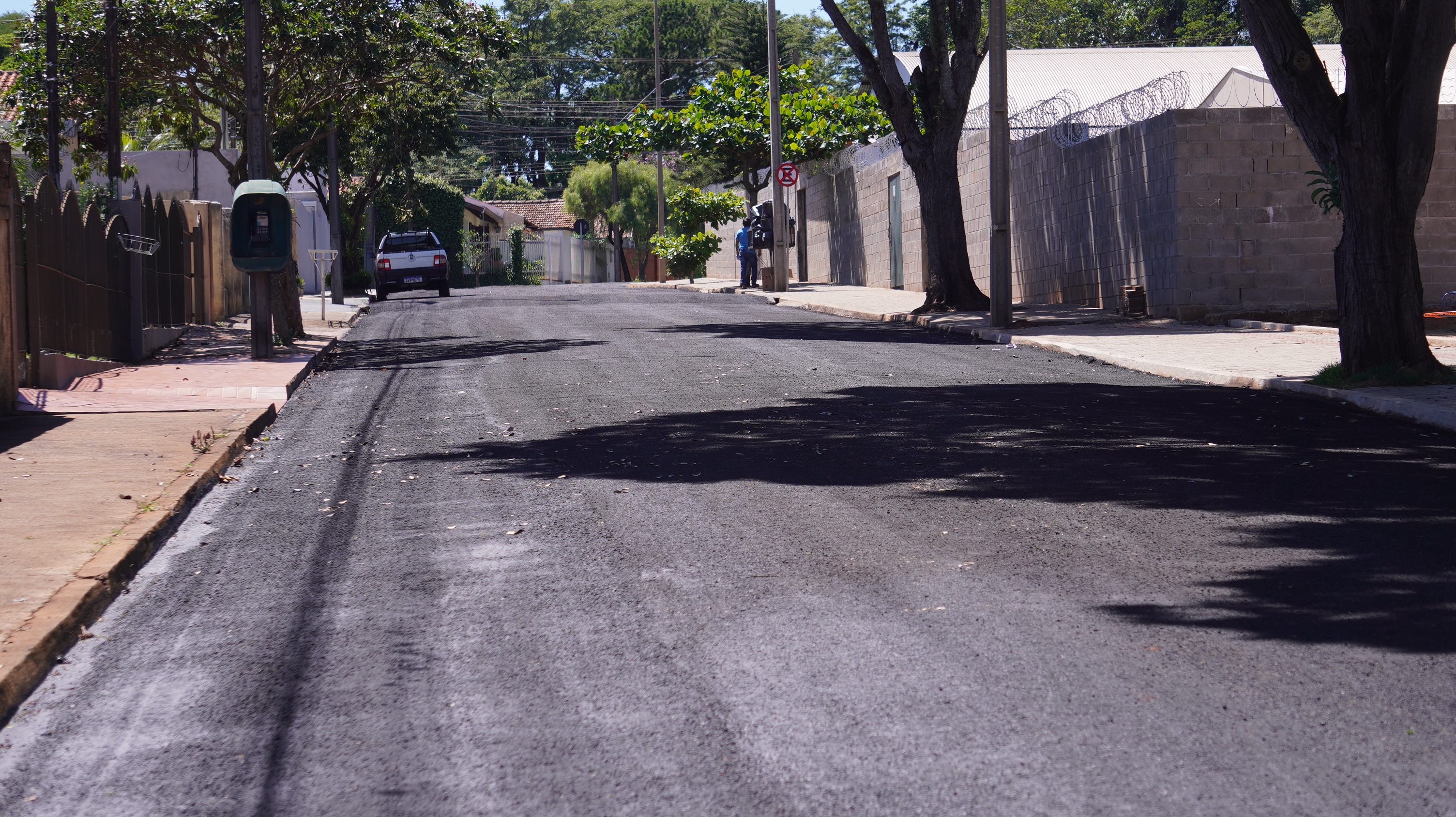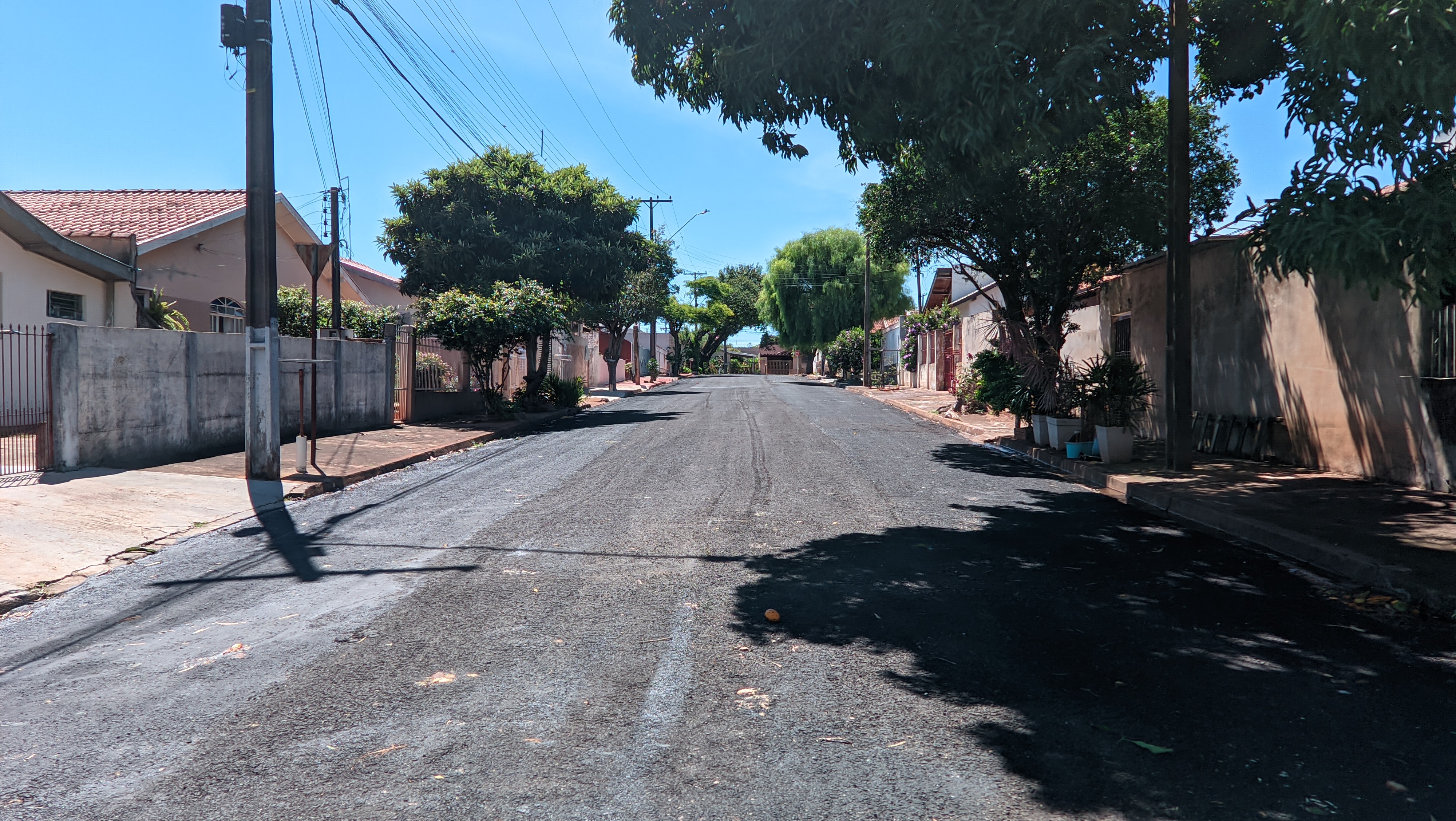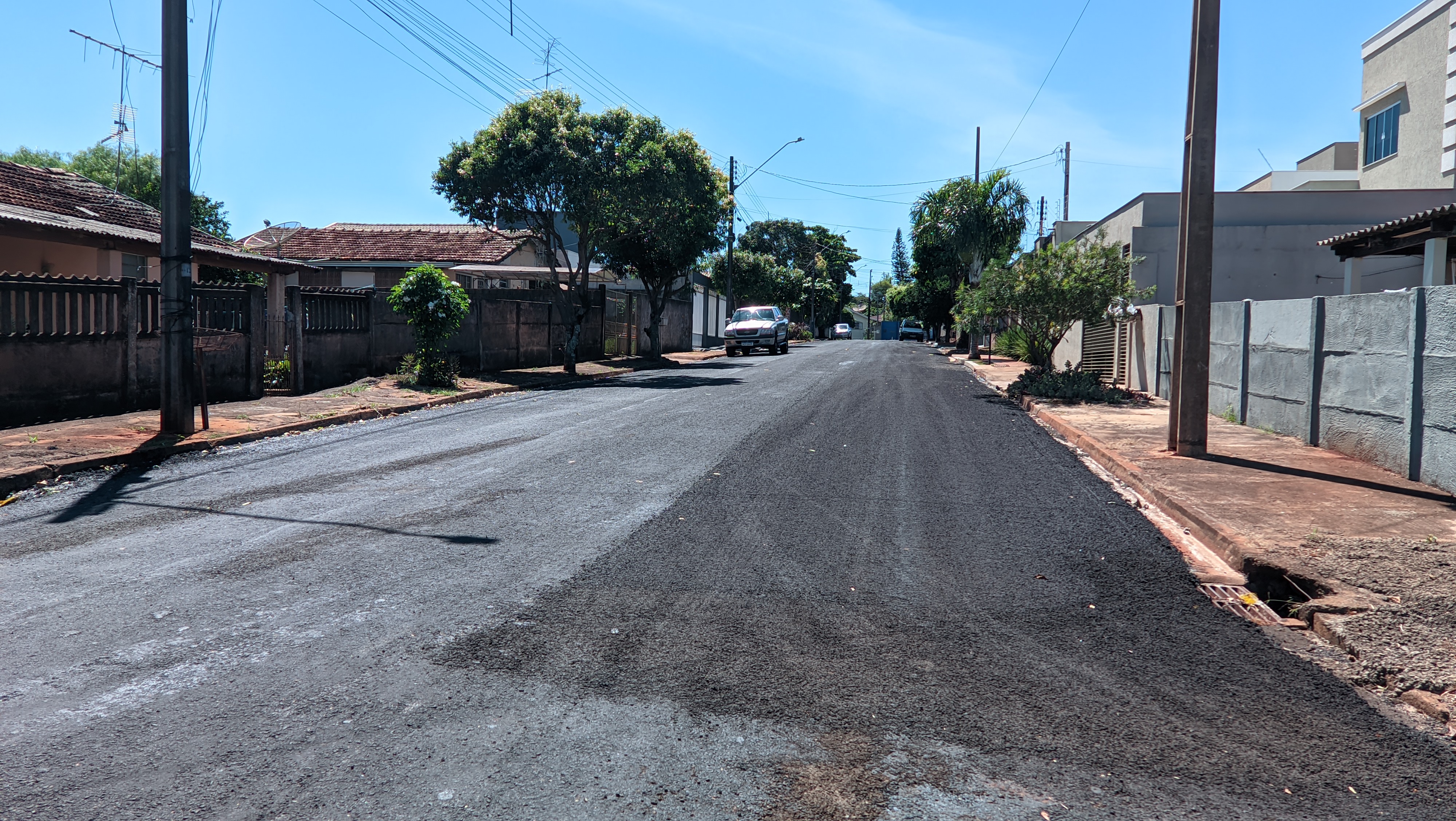 A secretaria de Infraestrutura está fazendo o serviço de melhoria no asfalto, com micropavimentação, nas ruas do Residencial Manoel Muller.