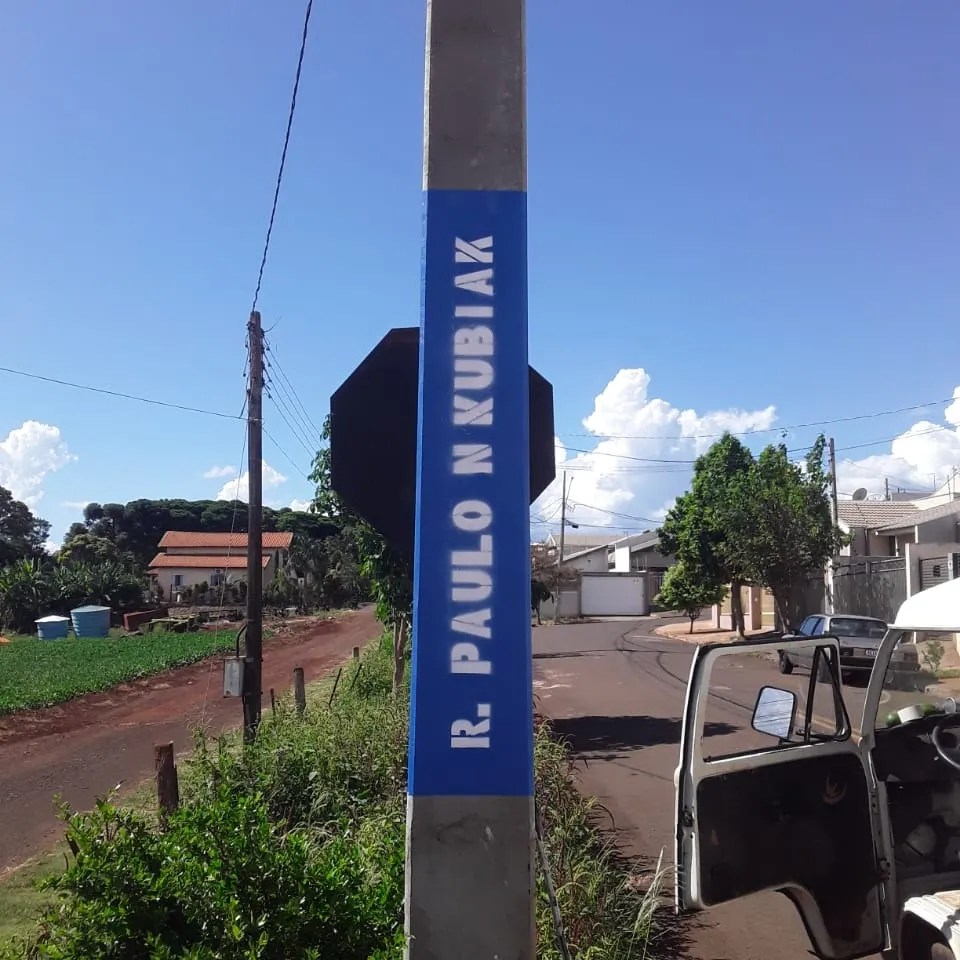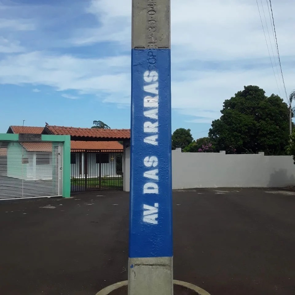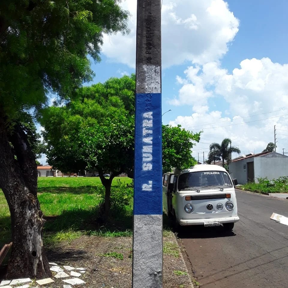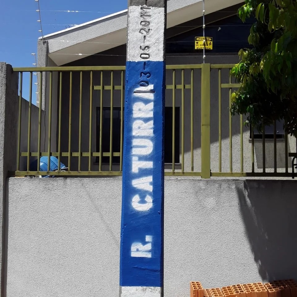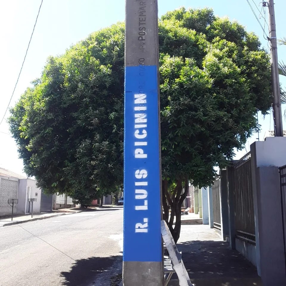 A secretaria de Serviços Públicos está realizando um mutirão de pintura em postes com a finalidade de identificar nomes de ruas e avenidas na cidade. O trabalho está padronizando essa demarcação com a escrita na cor branca e o fundo em azul.