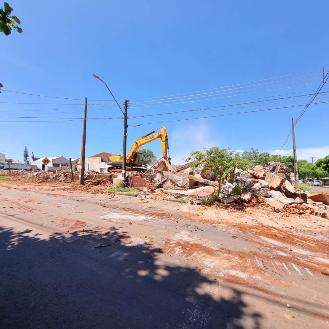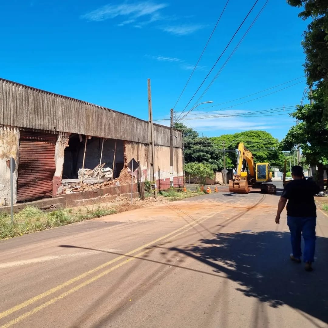 Após ser interditado pela Defesa Civil, por apresentar risco de queda, um barracão na área central, na rua Alfredo Moreira Filho esquina com Ciro Bolivar Araújo Moreira, foi demolido de modo preventivo.