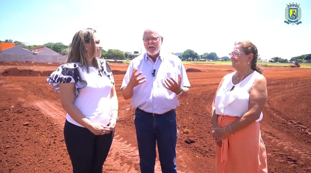 O prefeito Ailton Maistro, a primeira-dama Ana Maria Mungo Maistro e a secretária de Saúde Érika Ludwig foram conferir o início da obra de construção, que está na fase da terraplenagem.