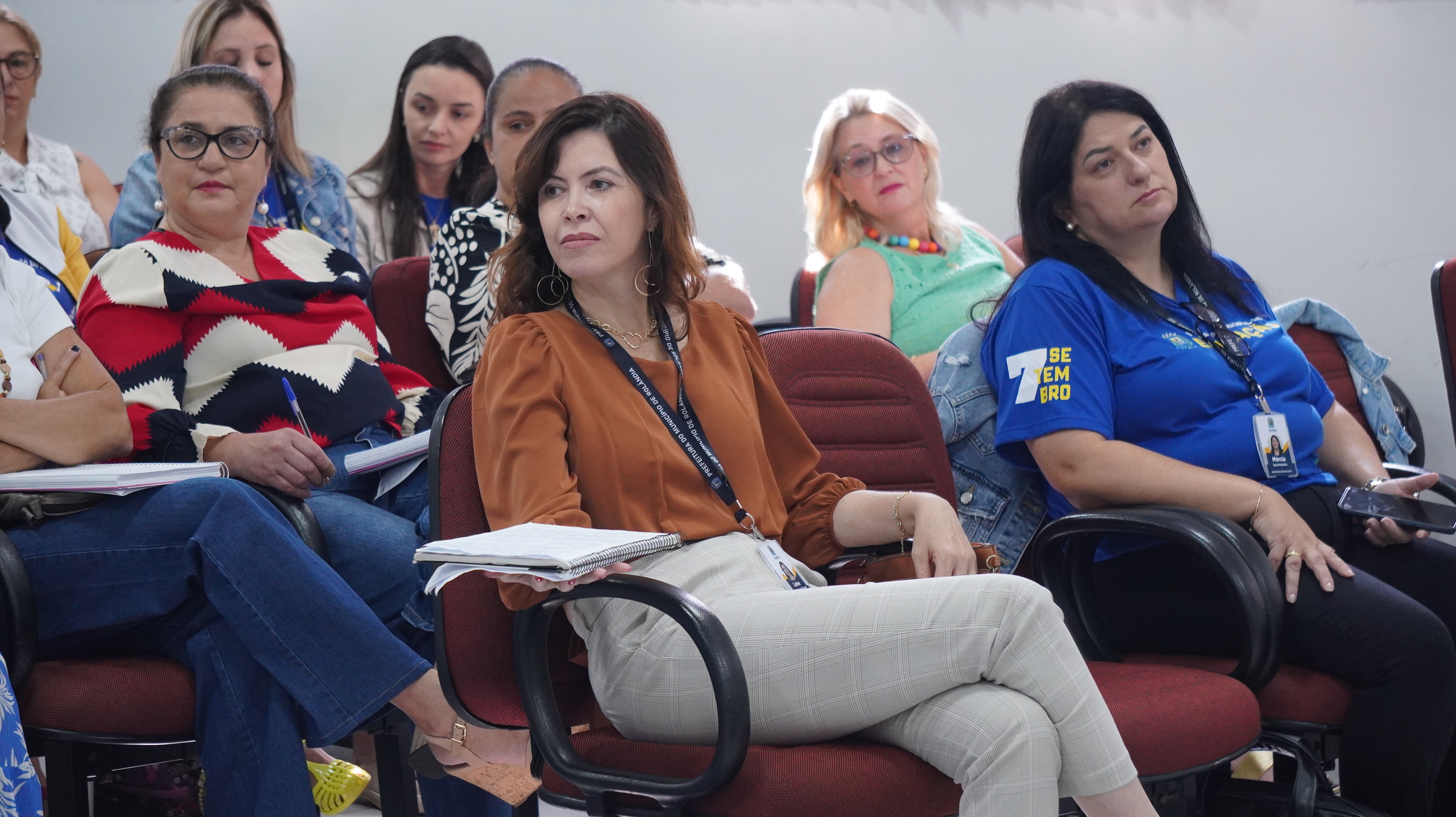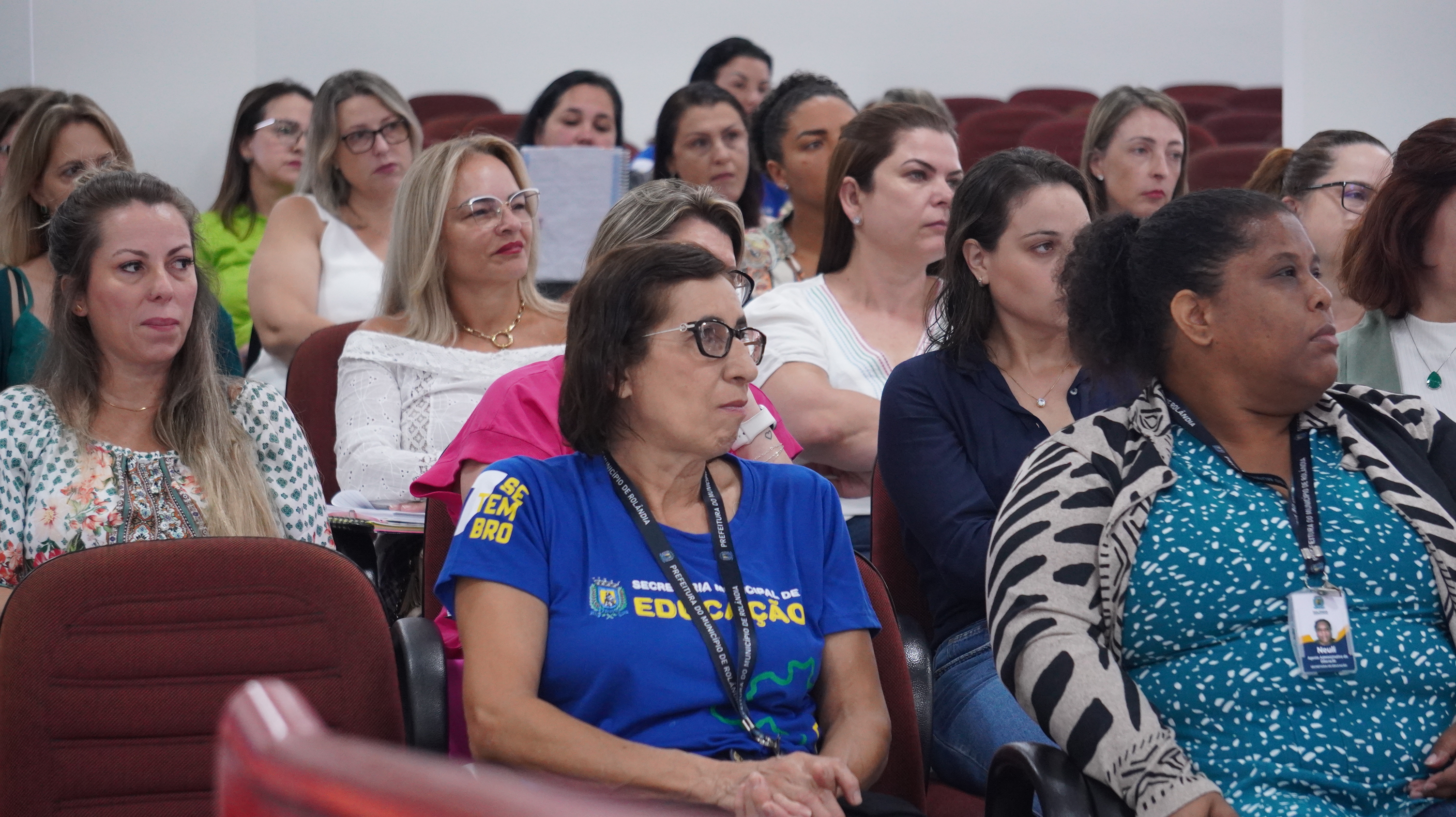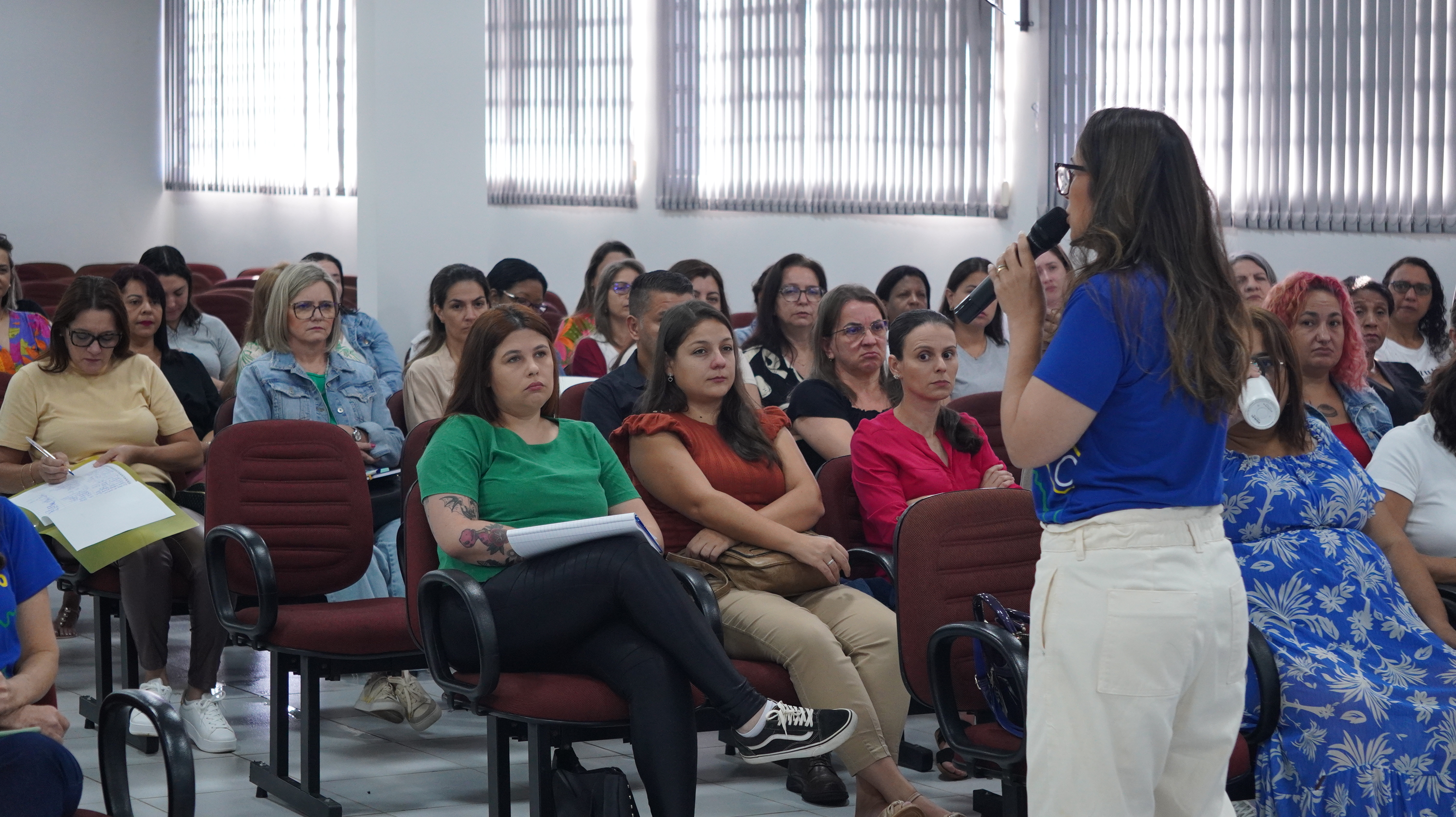 Os 62 gestores e pedagogas das escolas e CMEIs municipais e a equipe da secretaria participaram de uma reunião administrativa realizada na FACCAR.