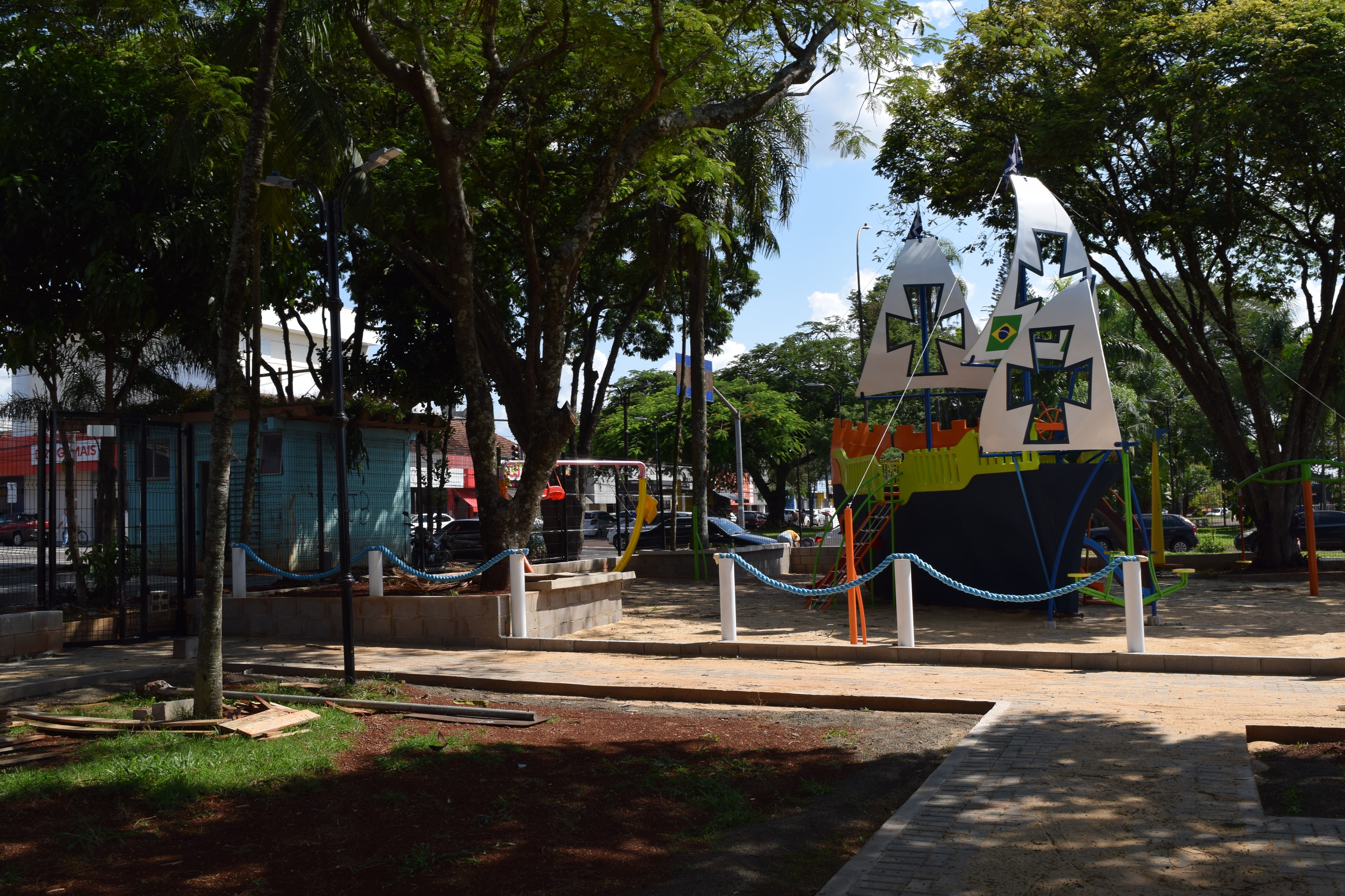 A secretaria de Serviços Públicos está concluindo a instalação do parque temático infantil na Praça Castelo Branco, na região central de Rolândia.