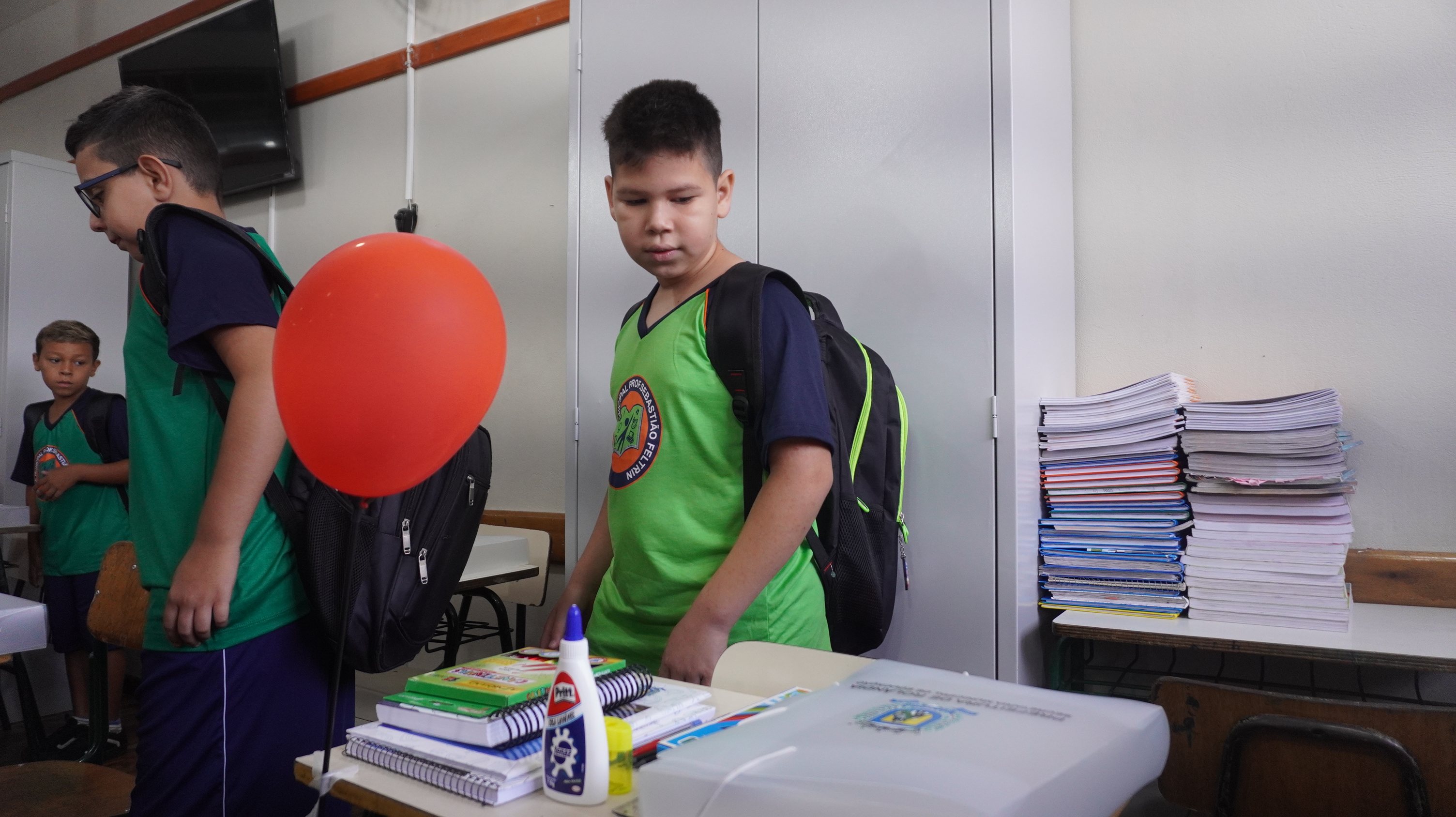 Nesta segunda-feira, dia 02, todos os 22 estabelecimentos educacionais, sendo 12 escolas e dez CMEI´s iniciaram suas atividades e como surpresa aos alunos, os materiais escolares que serão usados durante o ano estavam sobre a mesa, deixando os pequenos eufóricos.