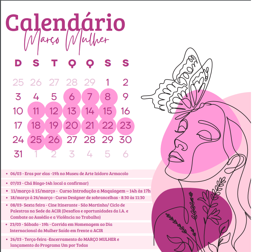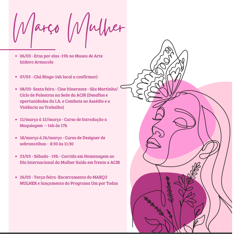 Nesta segunda-feira, dia 26 de fevereiro, no gabinete do prefeito Ailton Maistro, foi lançado o “Março Mulher”. A programação, feita pela Prefeitura em parceria com a ACIR, vai trazer eventos culturais, esportivos, de qualificação pessoal e profissional, dentre outros.