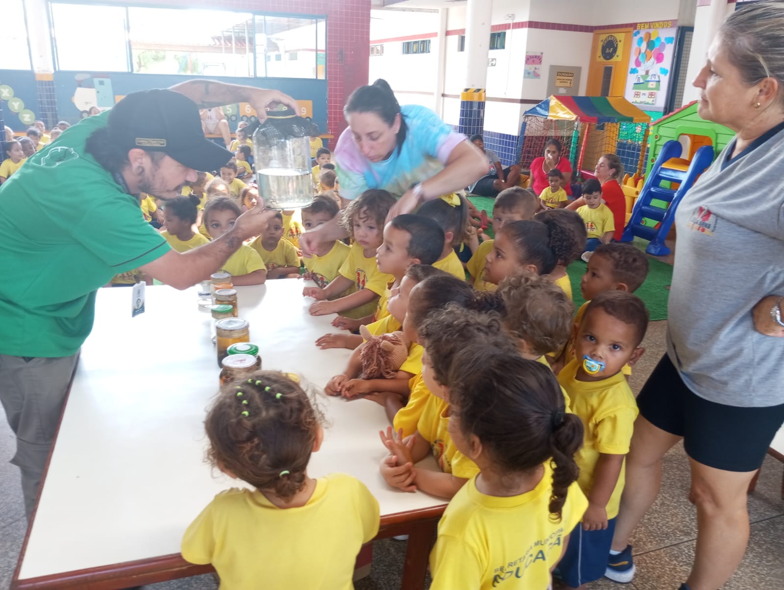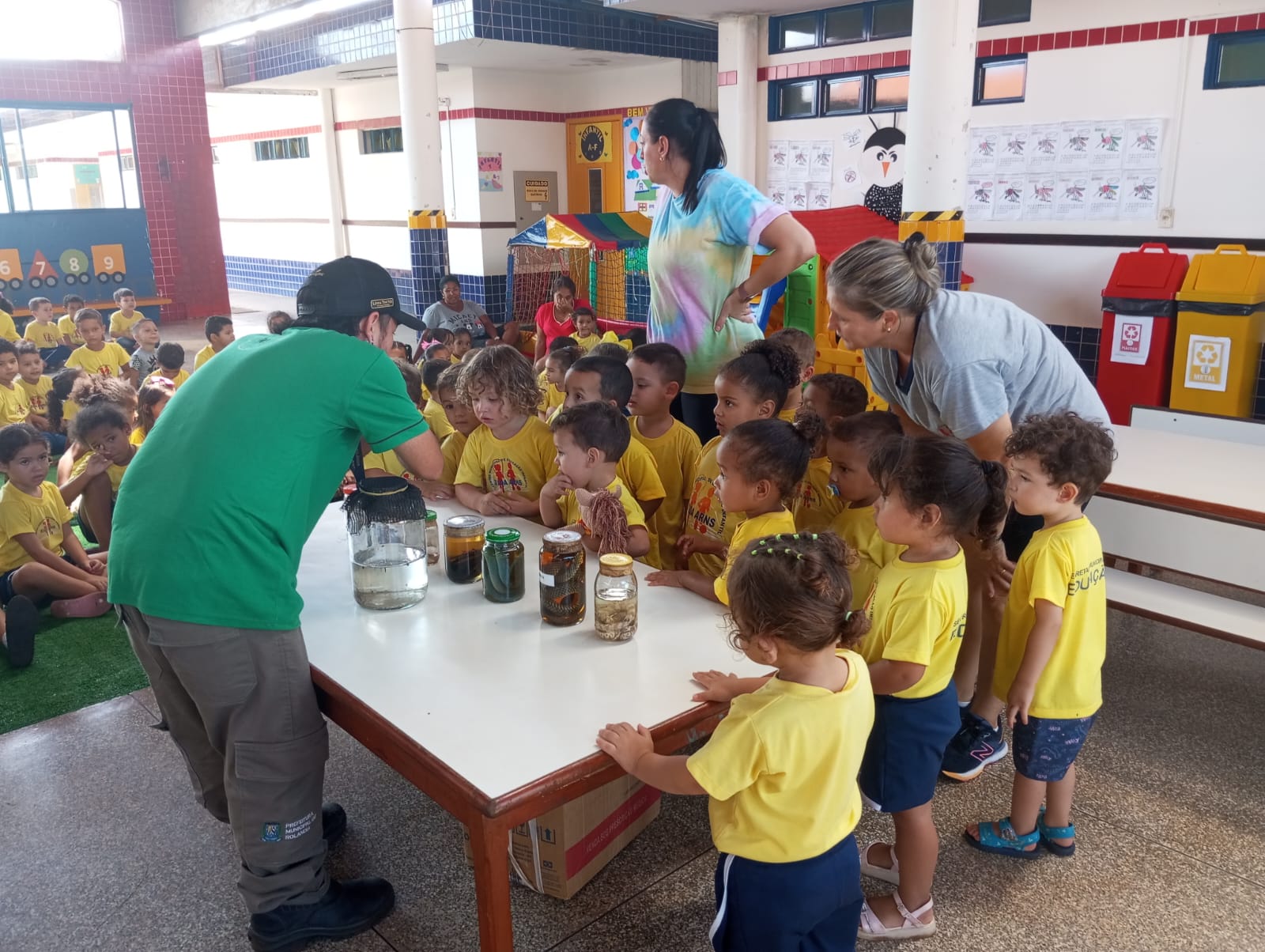 A equipe de endemias da secretaria municipal de Saúde esteve presente levando informações importantes para as crianças e solicitou que a mensagem fosse repassada a familiares em busca de ajudar na eliminação de criadouros do mosquito, facilitando assim o combate aos focos dentro da comunidade.
