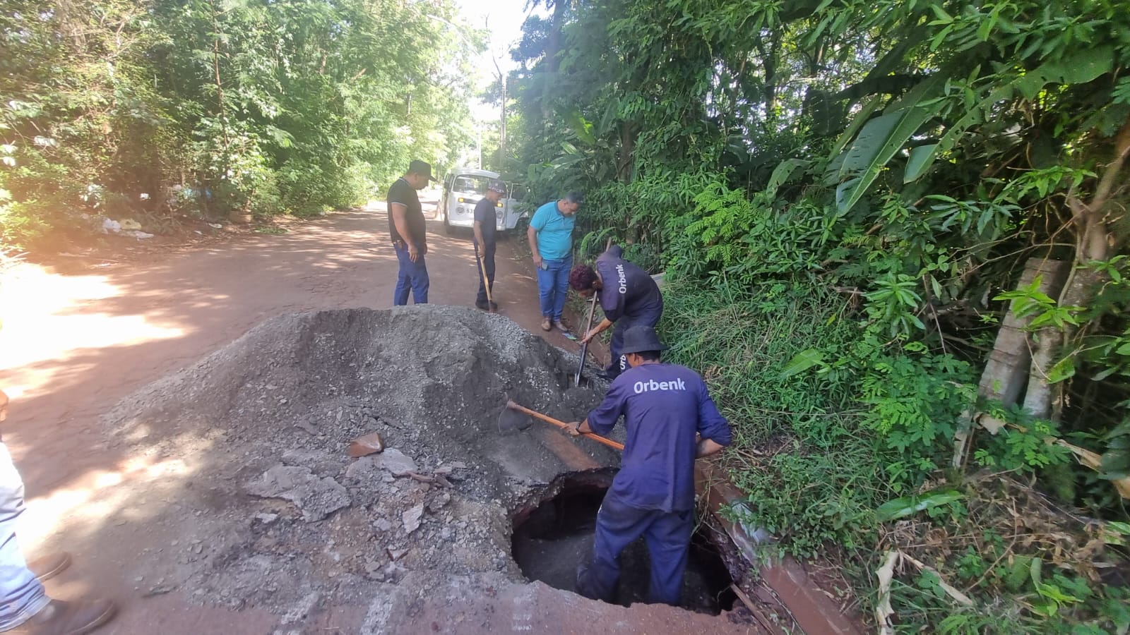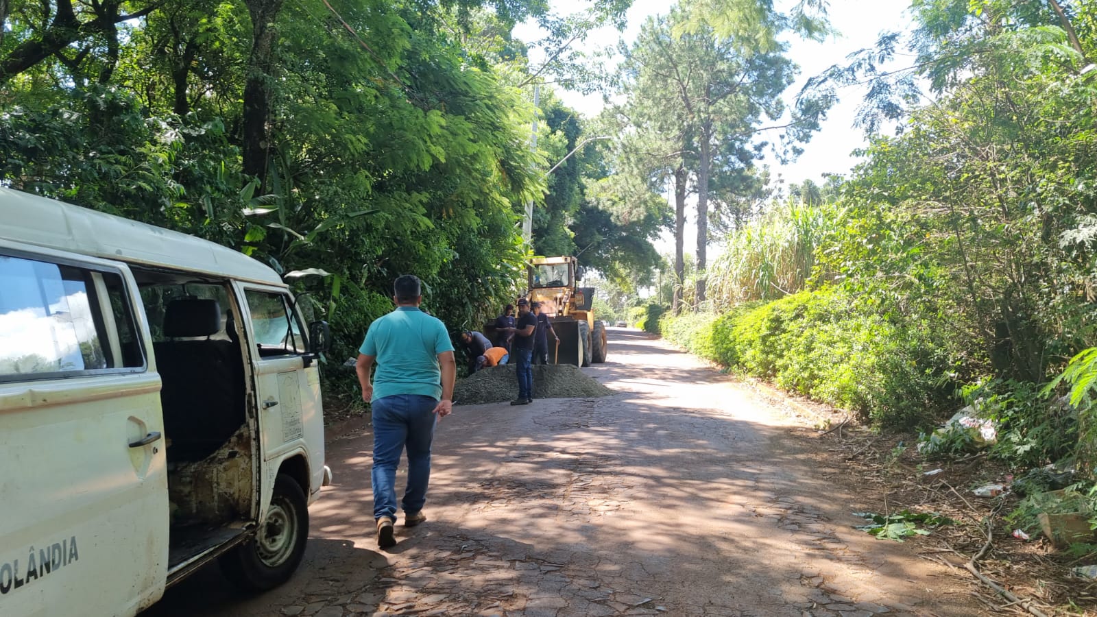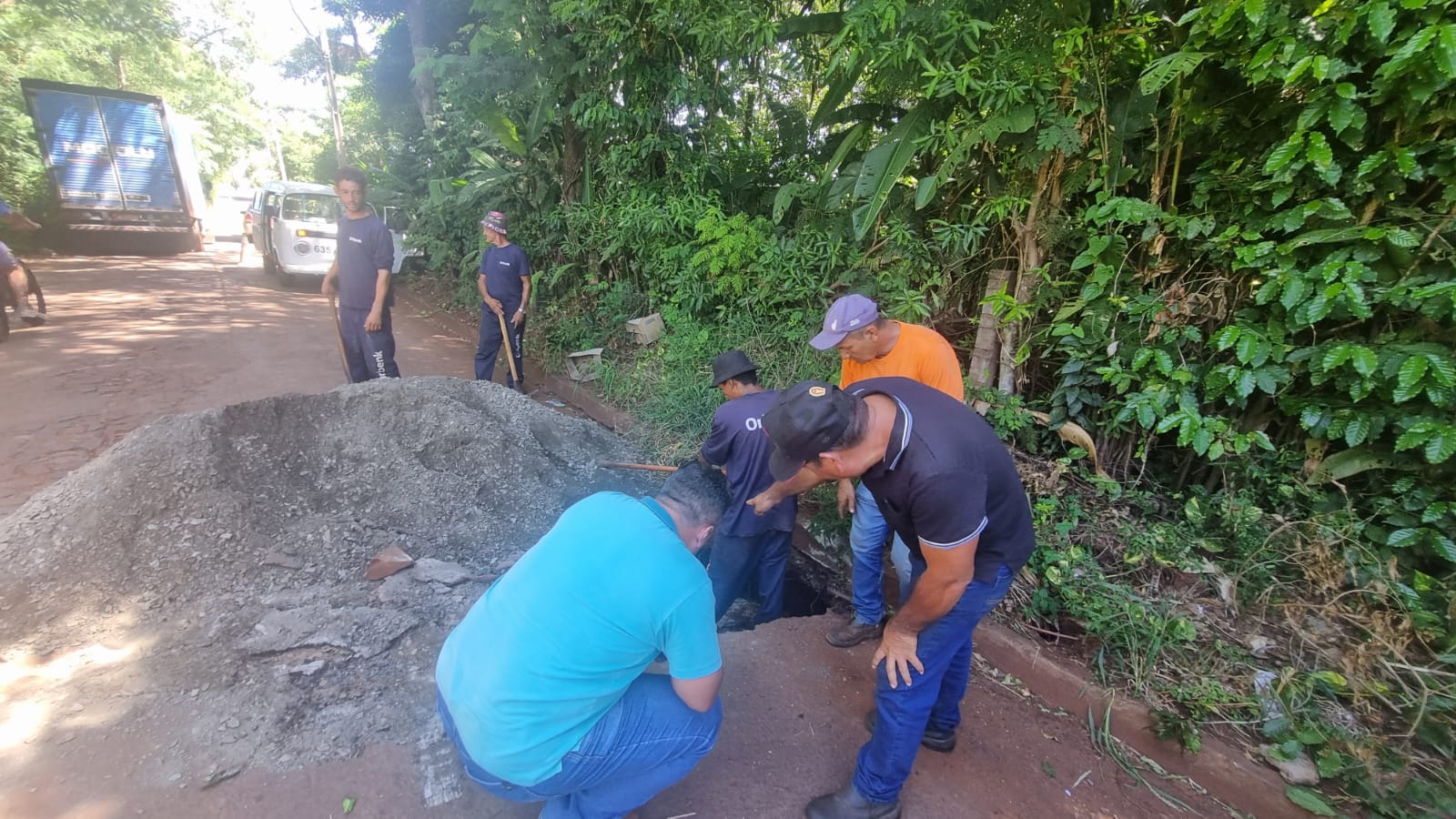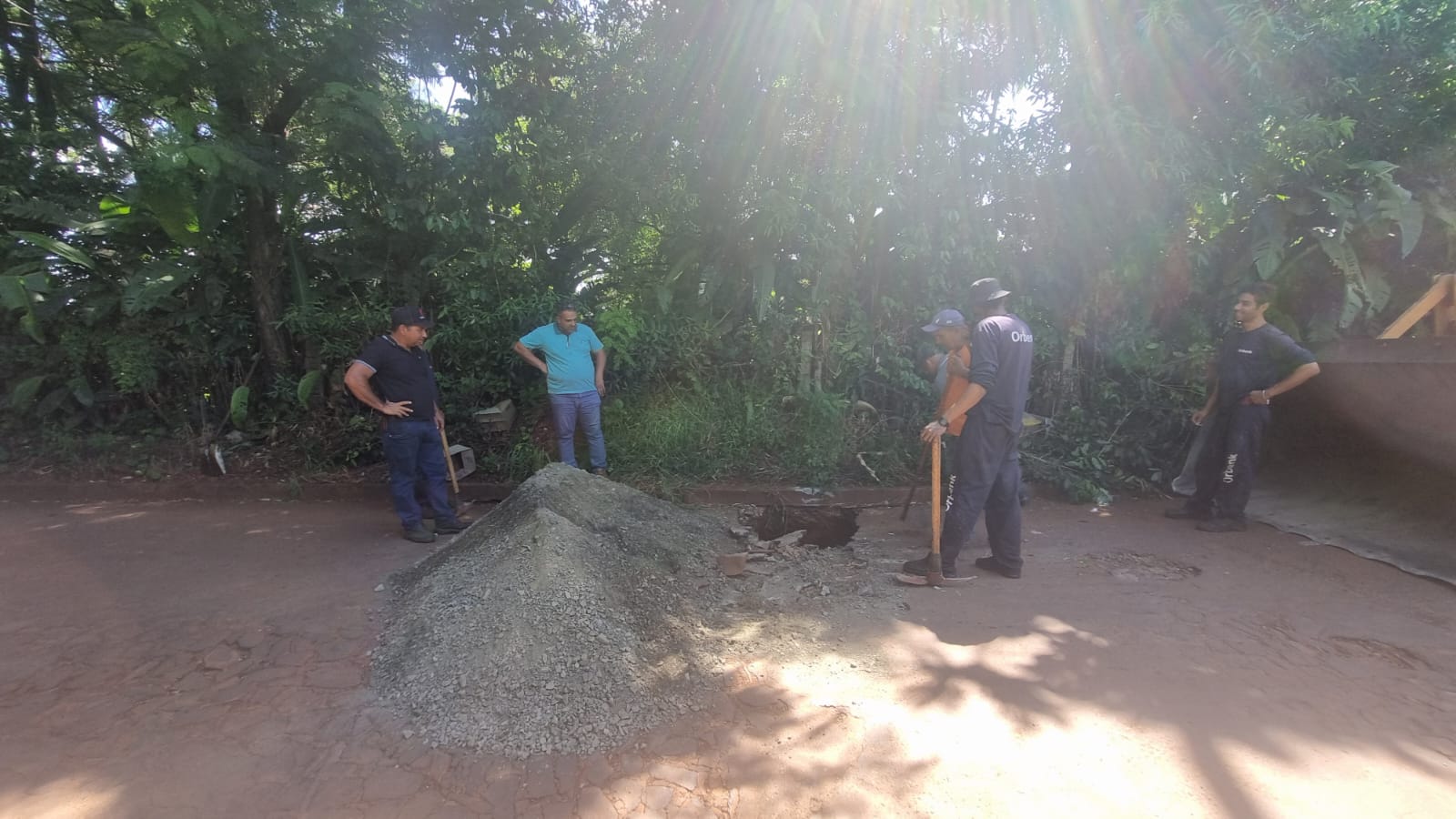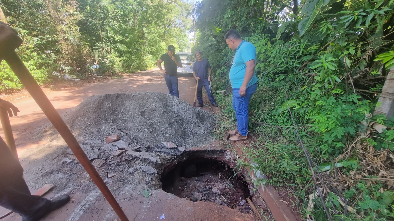 O radialista sinalizou com galhos para alertar quem passava por ali e repassou a situação ao secretário Lucinei Masson, que imediatamente encaminhou uma equipe para realizar os reparos no local.