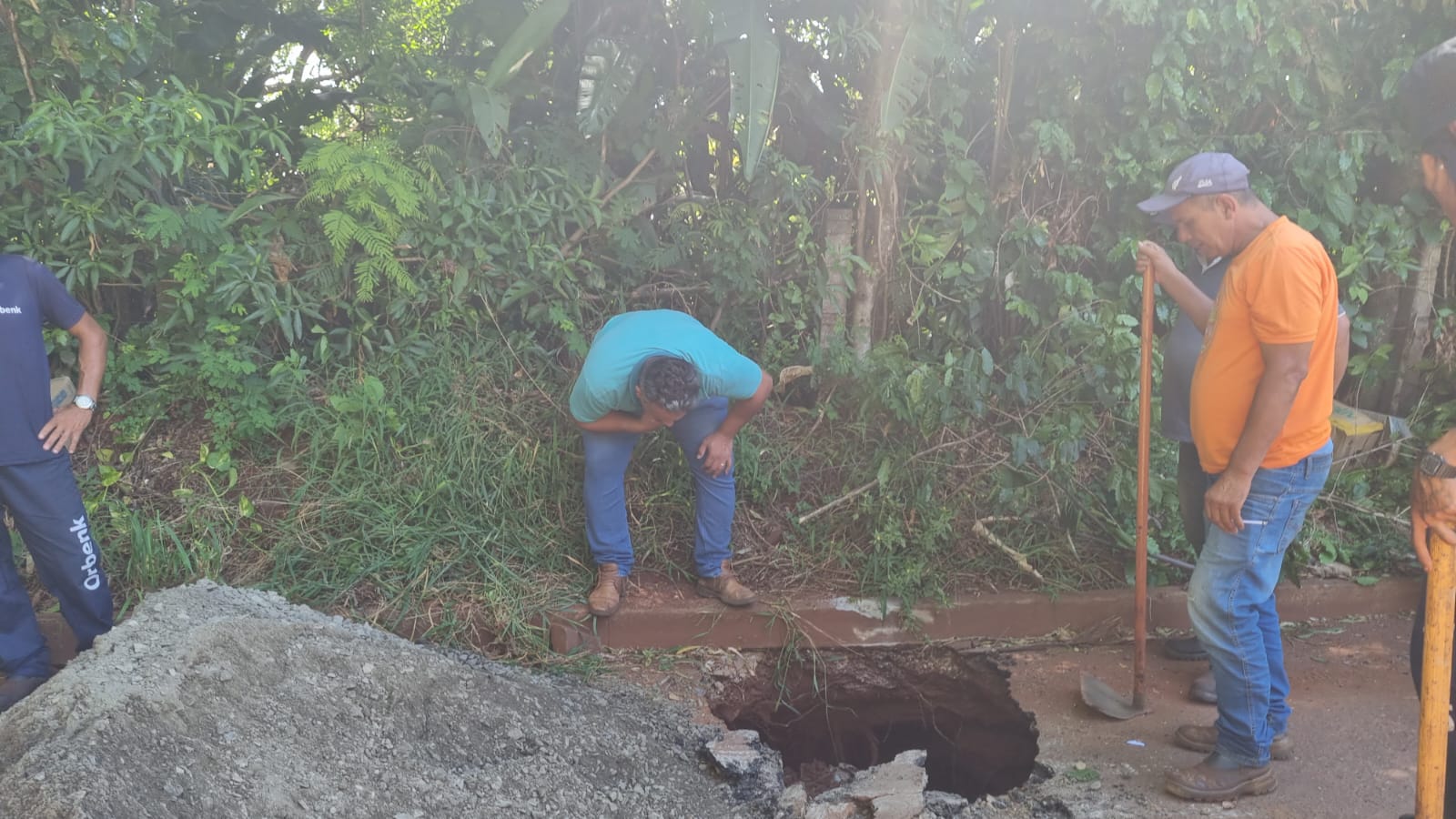 Nesta quarta-feira (13), o radialista Nilson da Silva se deparou com uma cratera formada no asfalto que colocava em risco pessoas que trafegam pelo local.