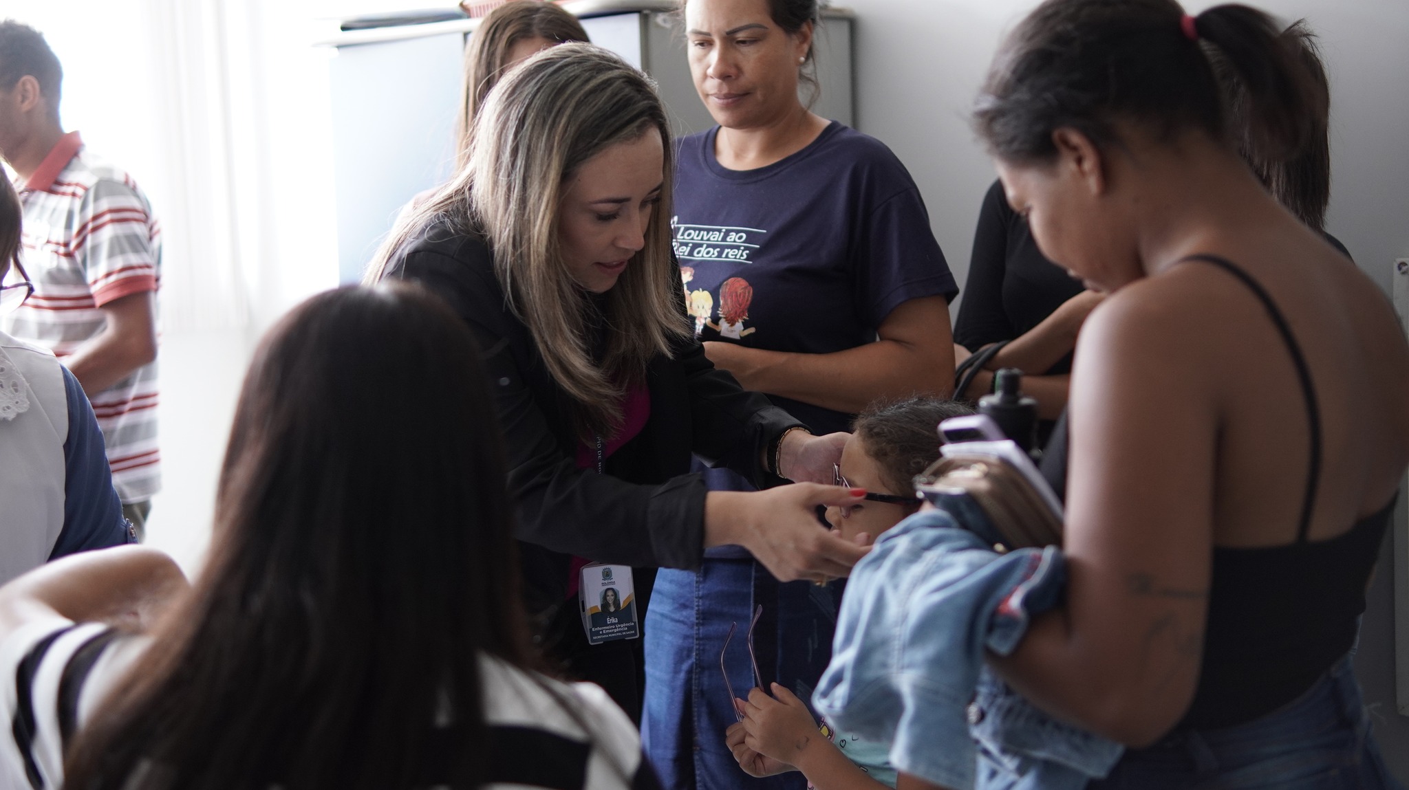 Nesta segunda-feira, dia 25 de março, a secretária de Saúde, Érika Bezerra Ludiwig, e a secretária de Educação, Leise Camargo, e servidoras das duas secretarias, acompanharam 48 crianças, que vieram com seus pais ou responsáveis na sede da secretaria de Saúde, escolherem as armações. Agora, os óculos serão montados e, em breve, serão distribuídos para esses alunos.
