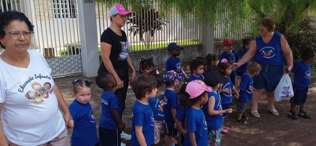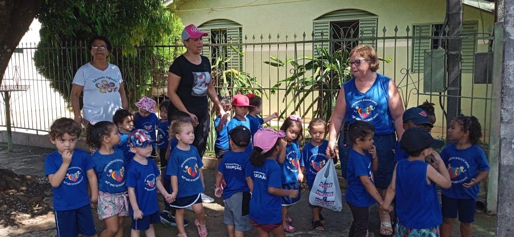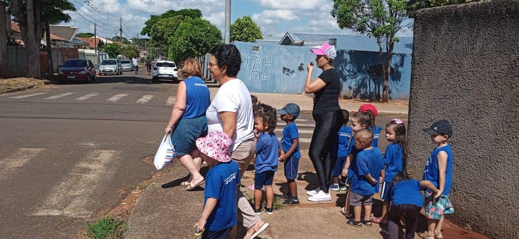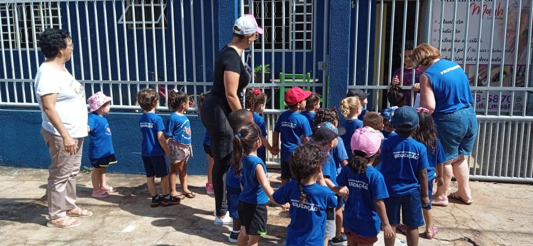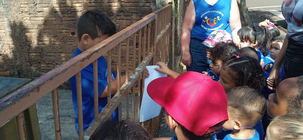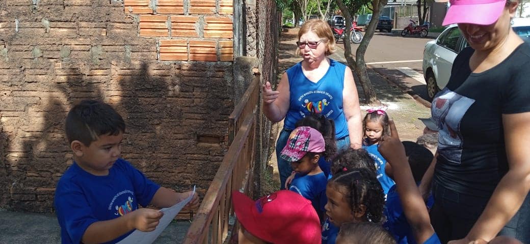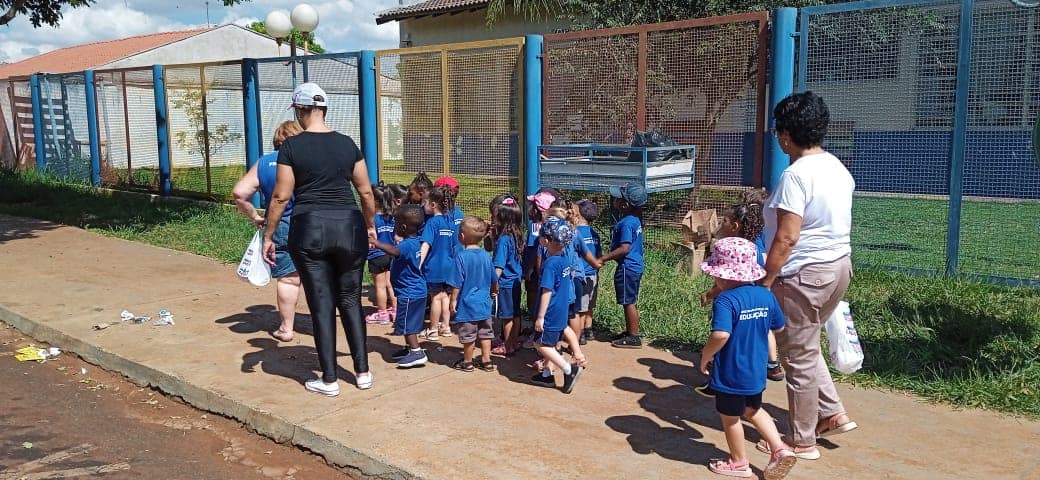 A turma do Infantil 3 G, do período vespertino, das professoras Dolores Lopes e Adriana Cristina Fernandes do Cmei Marly do Nascimento Santos, do Parigot de Souza, realizou uma caminhada no dia 3 de abril ao redor da instituição com o objetivo de observar como estavam os quintais das casas e as ruas.