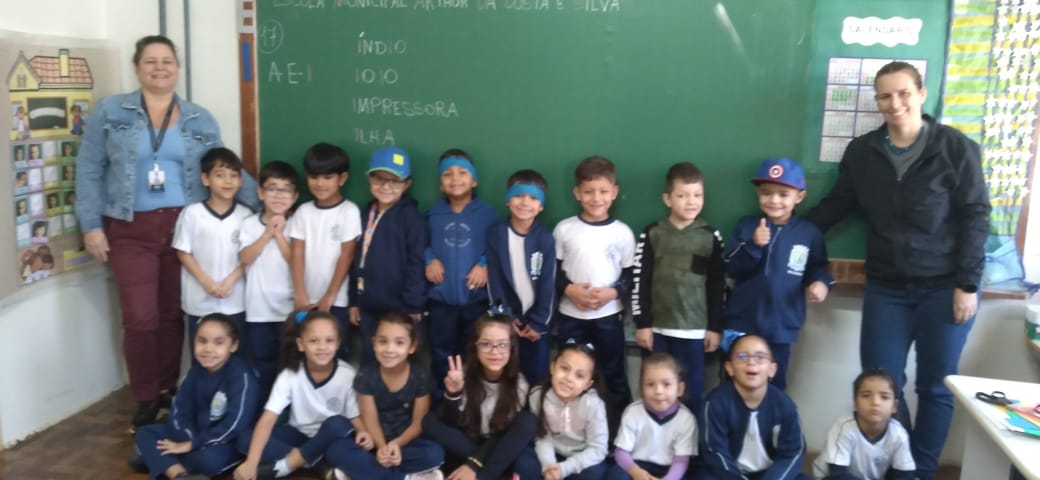 Alunos da Escola Municipal Arthur da Costa e Silva, centro, se vestem de azul em referência ao mês de abril, mês de conscientização e conhecimento sobre o autismo.