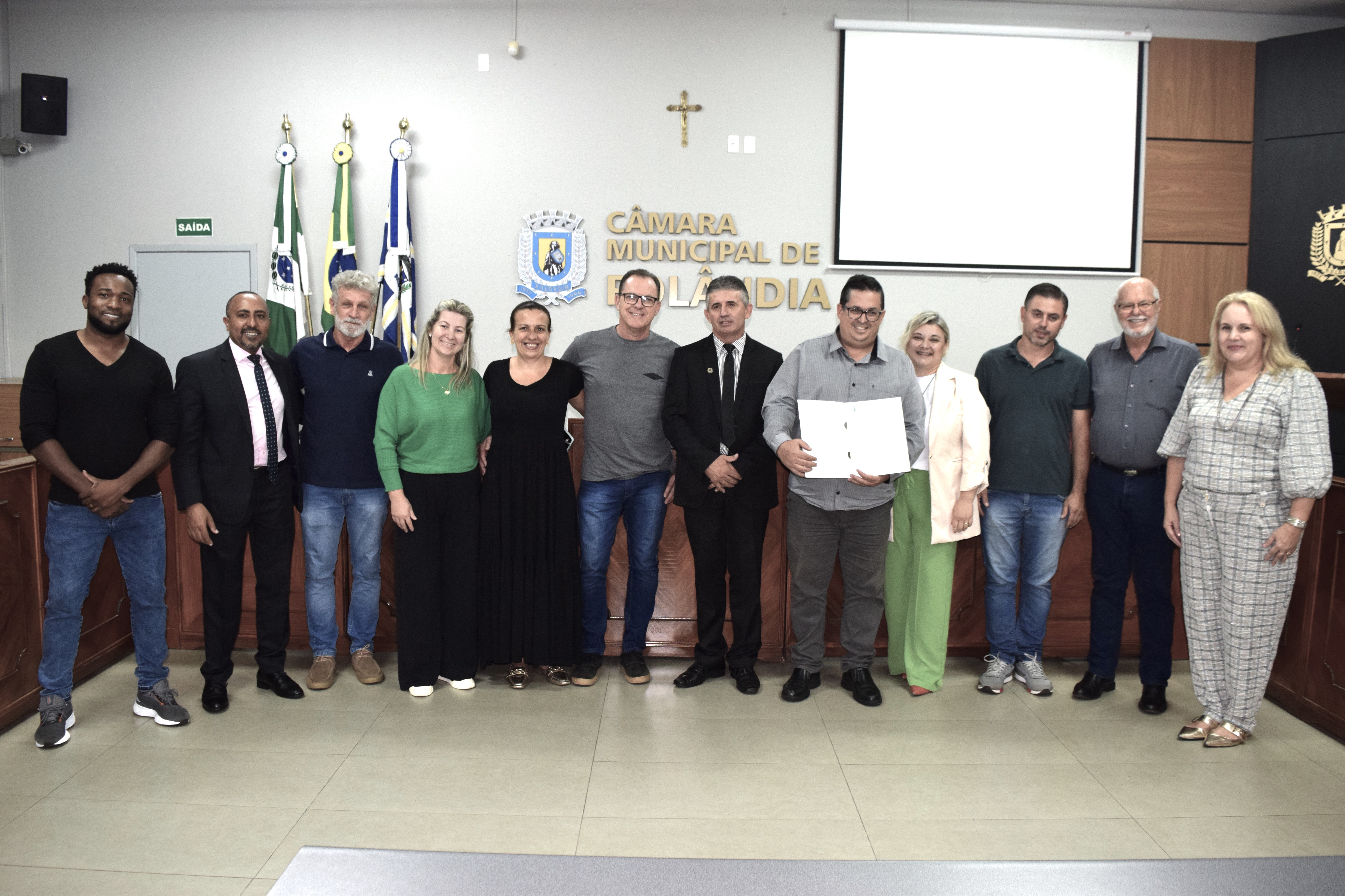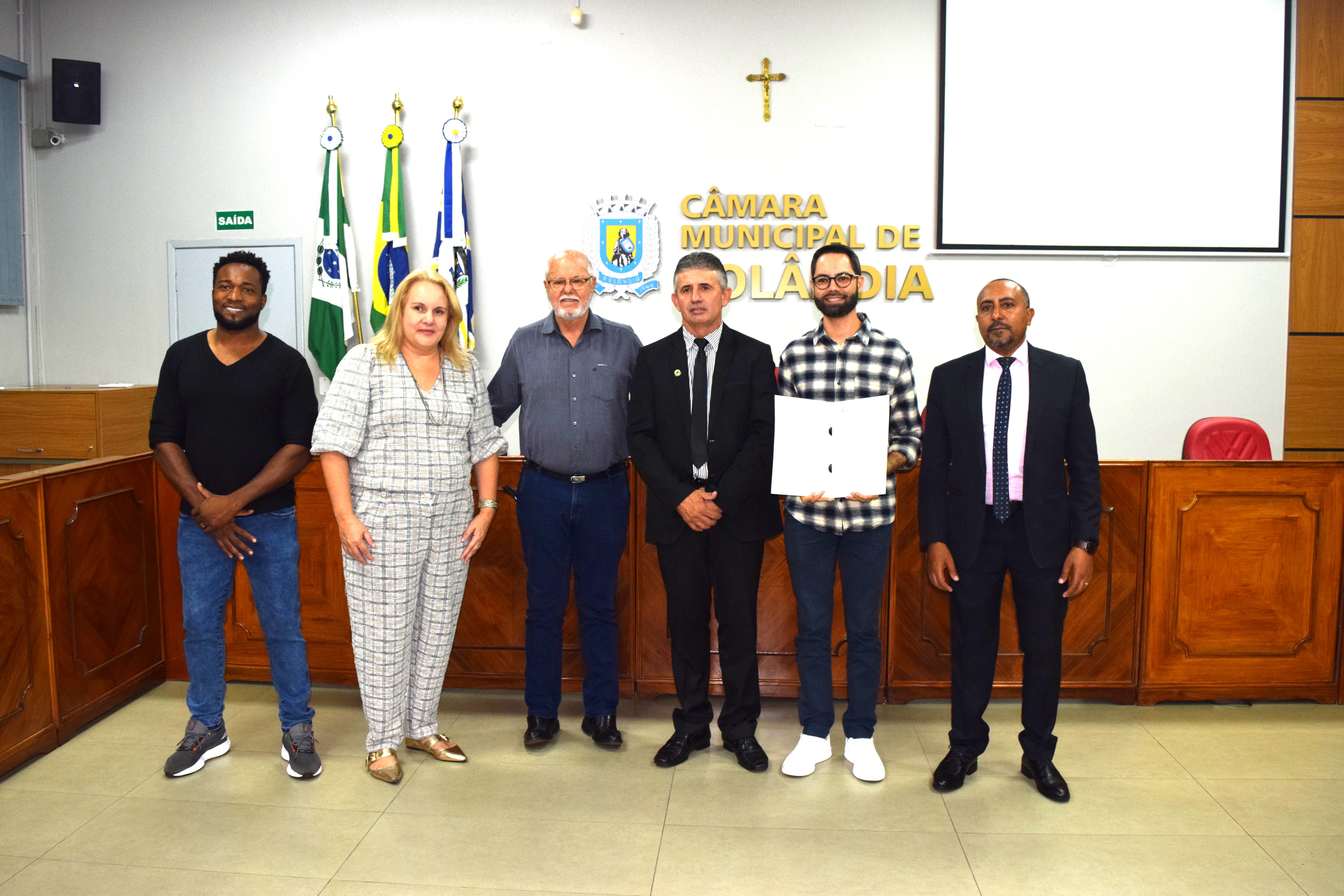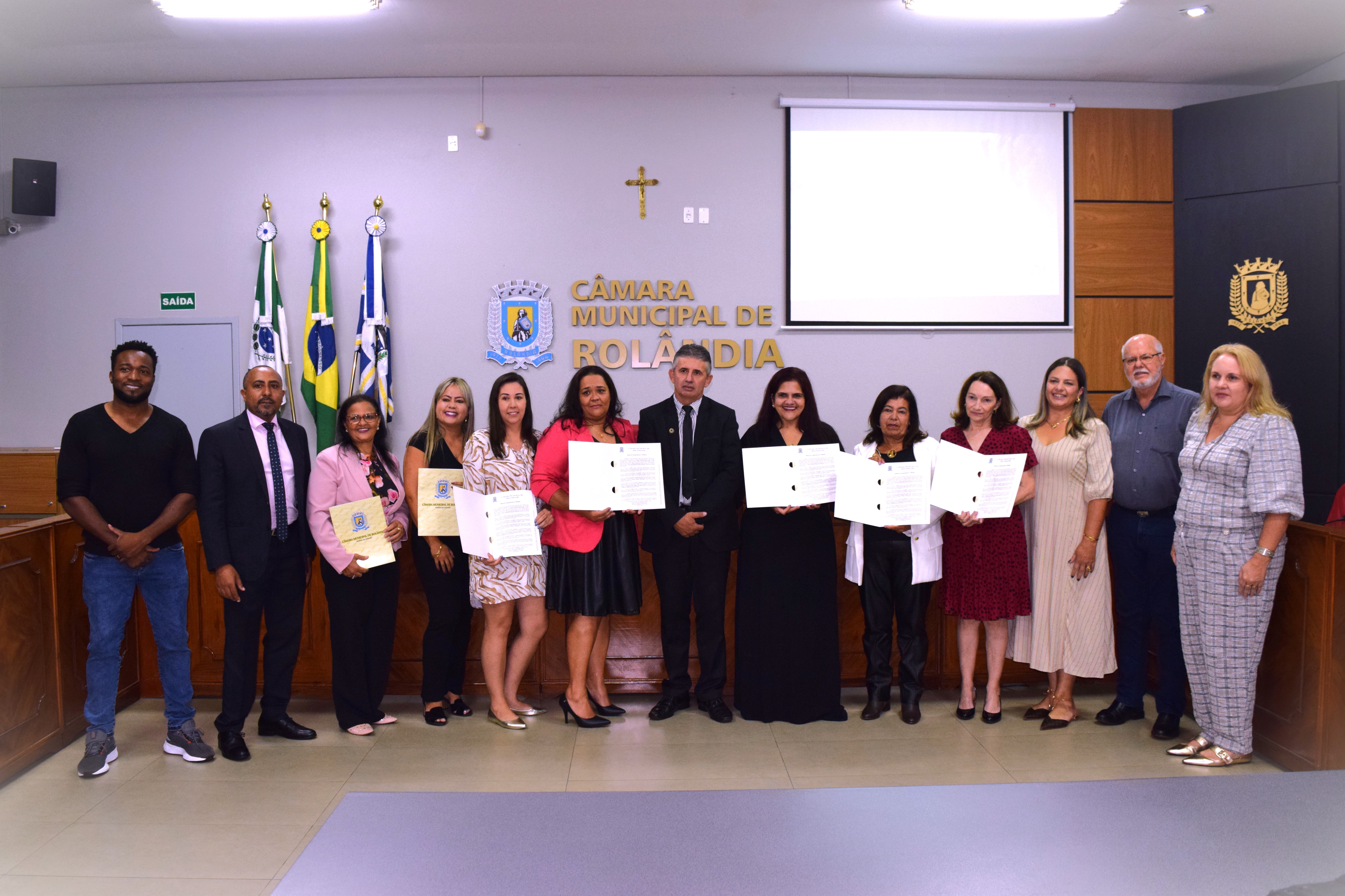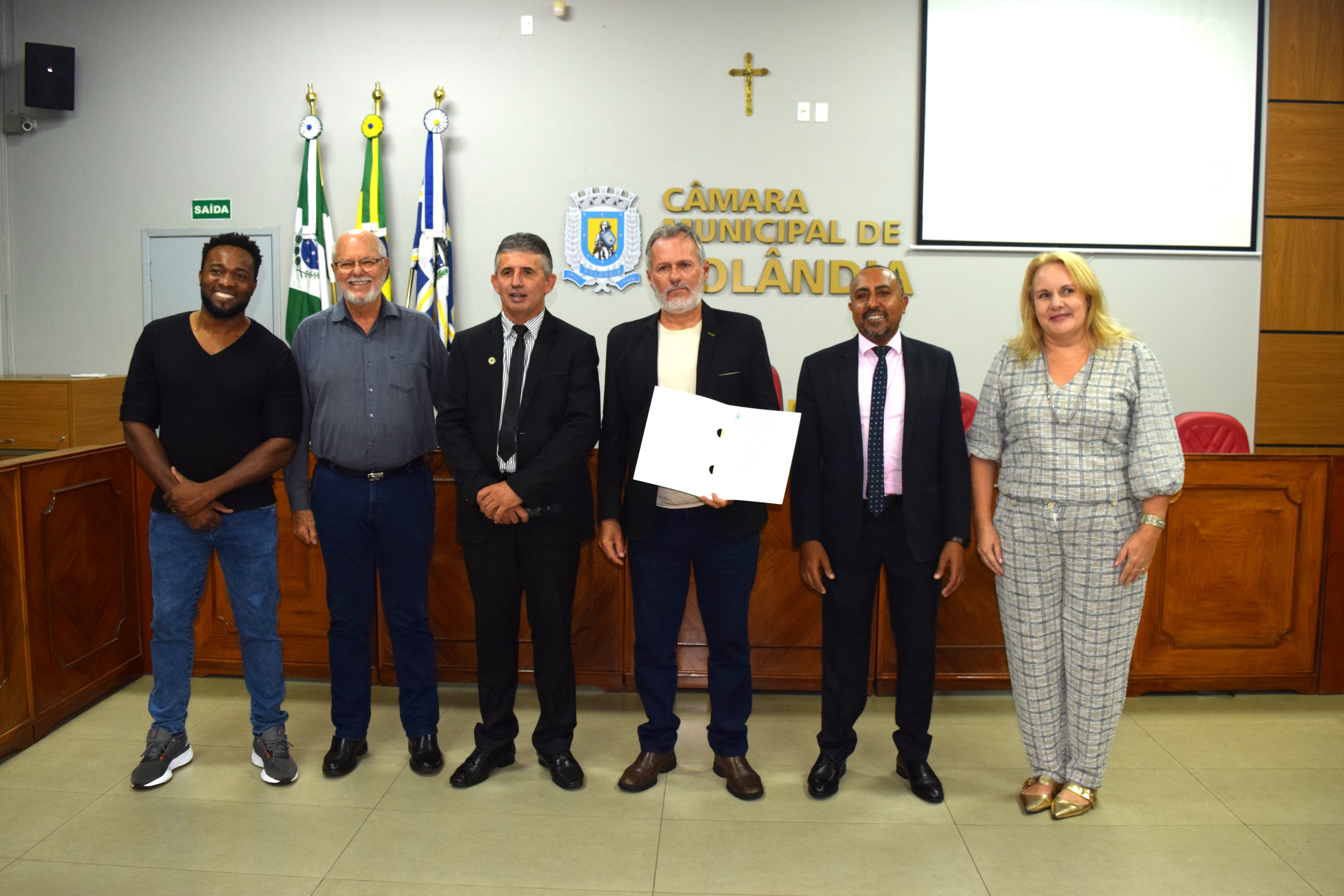 O autor é o vereador Sandro Leonardi. Foram oito moções aprovadas pelos demais legisladores municipais. Na entrega da honraria, participaram os vereadores Sandro Leonardi, o presidente da Câmara, Reginaldo Silva, que comandou a sessão solene, Cristina Pieretti (líder do prefeito na Câmara) e Rodrigão, além dos homenageados, familiares e convidados.
