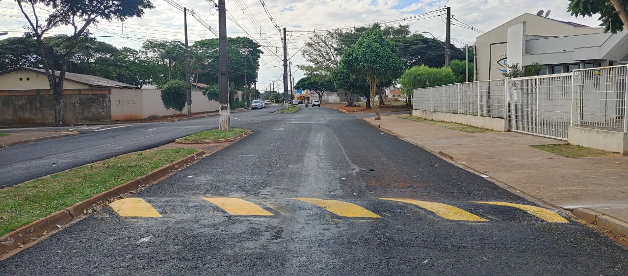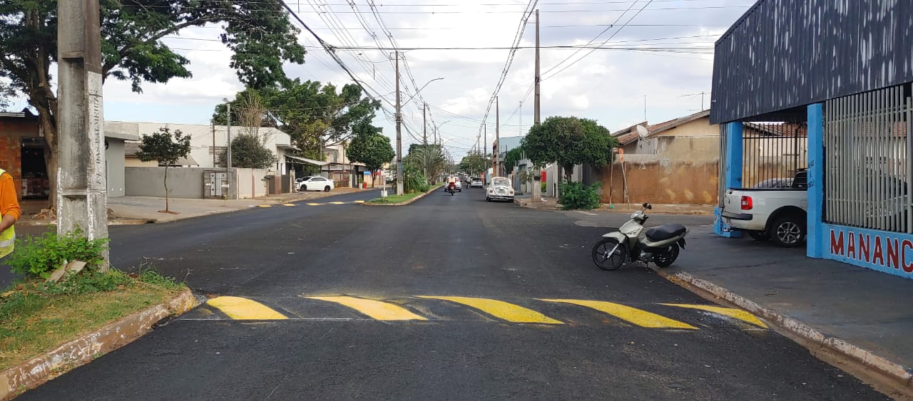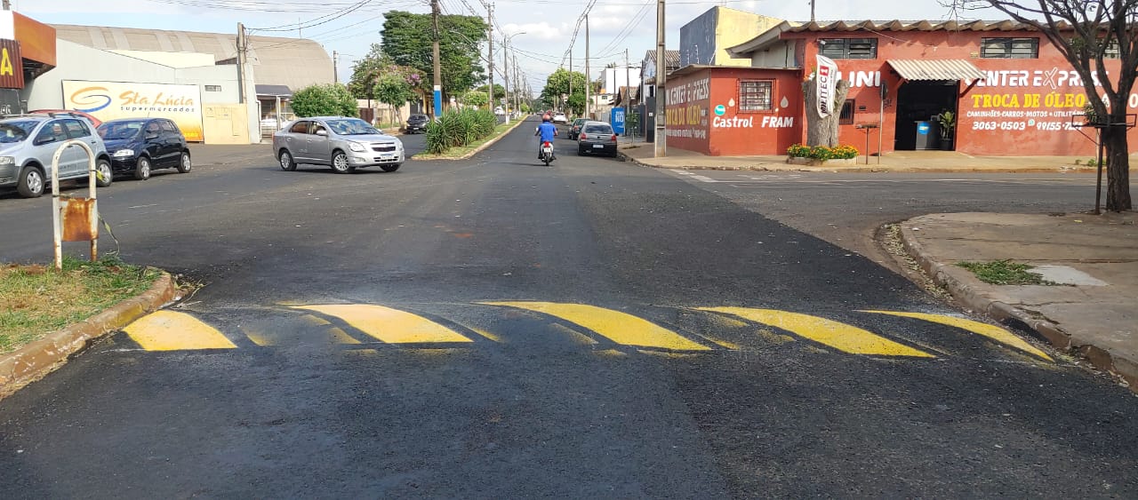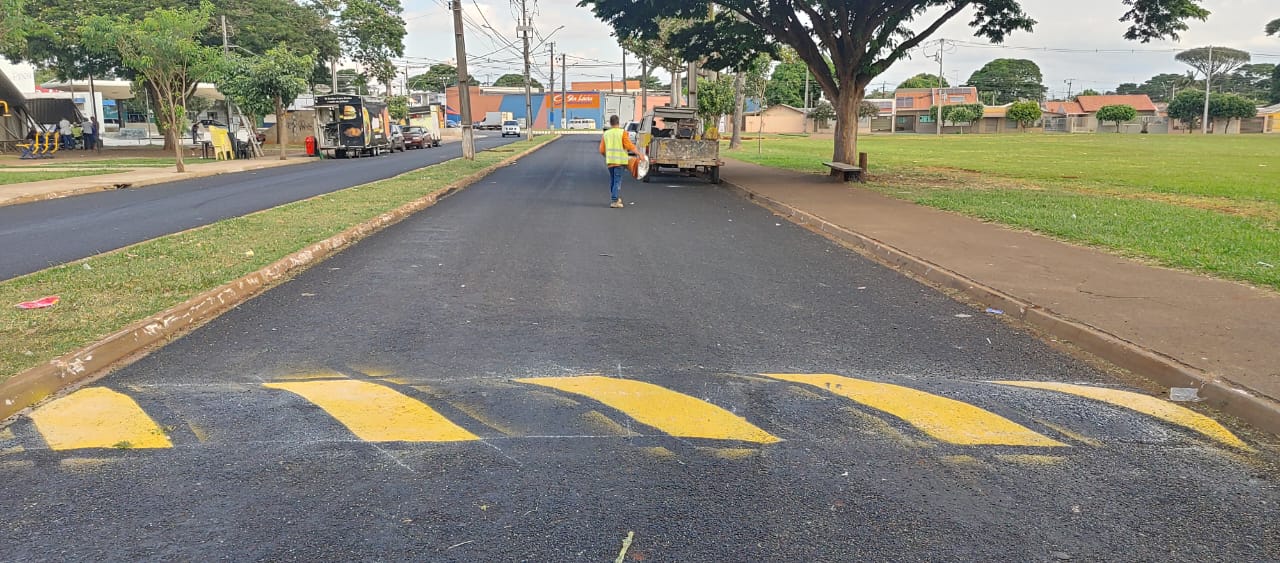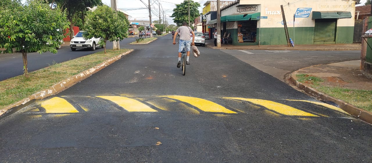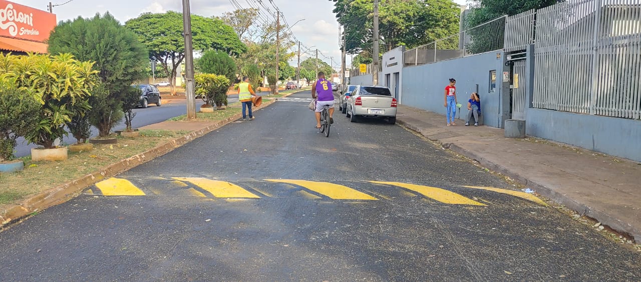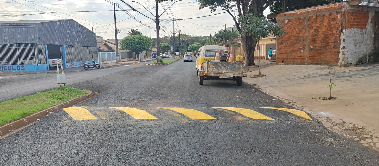 A secretaria de Serviços Públicos iniciou nesta terça-feira (14) a pintura das lombadas da Avenida das Palmeiras no jardim Novo Horizonte.