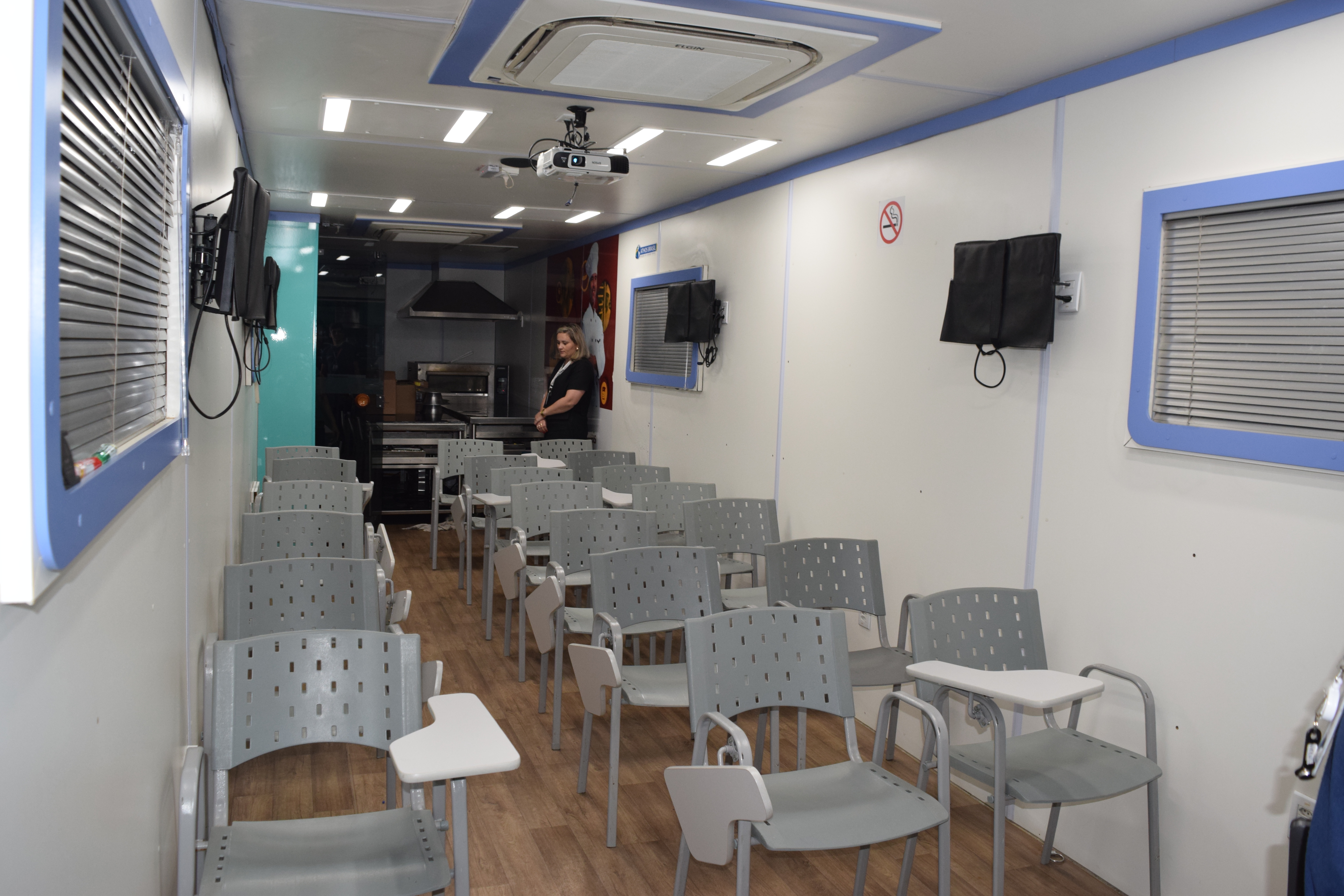INICIADAS AS AULAS DO CURSO DE PANIFICAÇÃO/CONFEITARIA VIA CARRETA DO CONHECIMENTO, ESTACIONADA NO PÁTIO INTERNO DA PREFEITURA