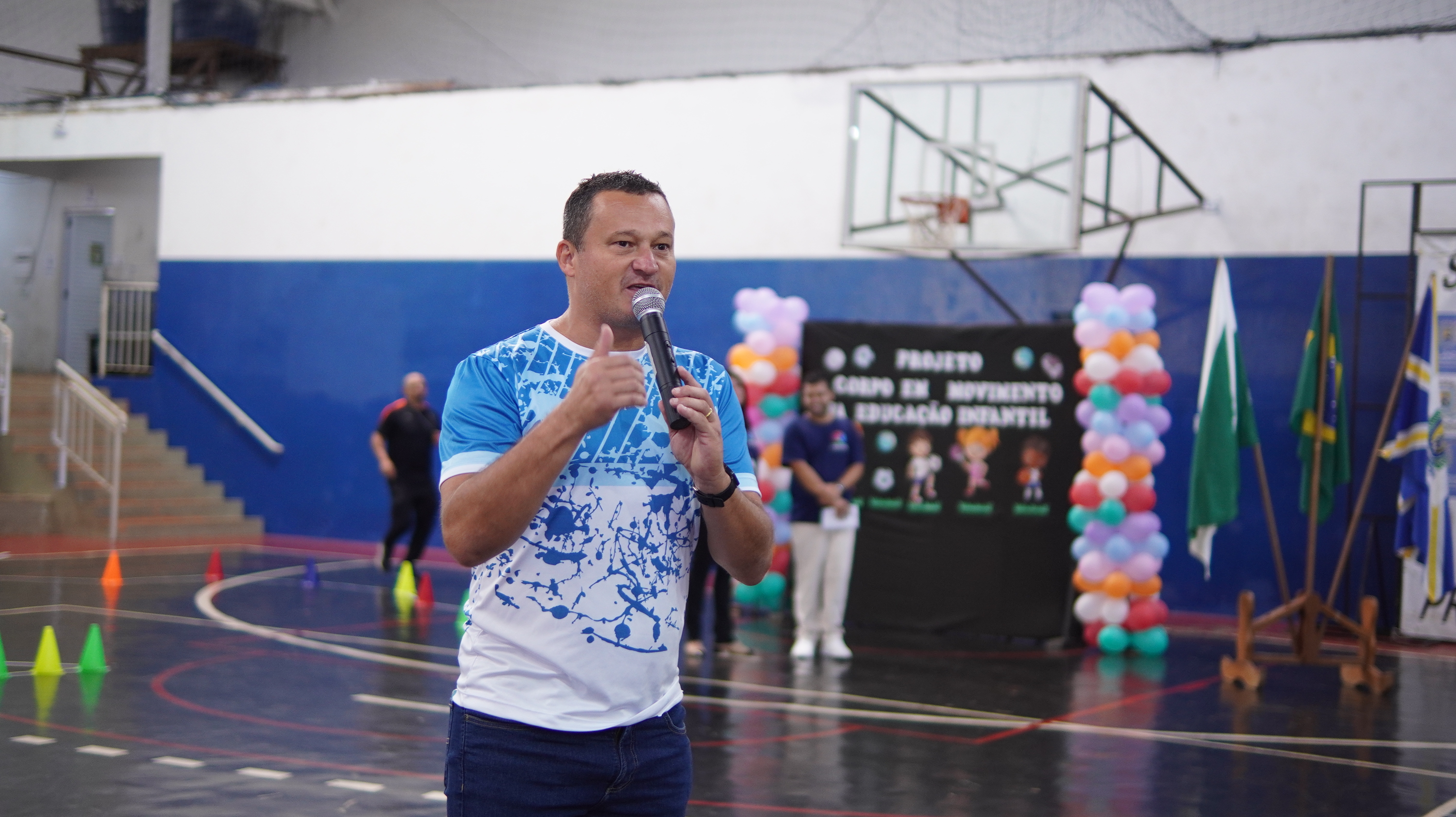 Nesta terça-feira, dia 11 de junho, as secretarias de Esportes e de Educação, com apoio da secretaria de Saúde e da Polícia Militar, iniciaram, no anexo do Ginásio Emílio Gomes, o projeto “Corpo em movimento na Educação Infantil”.