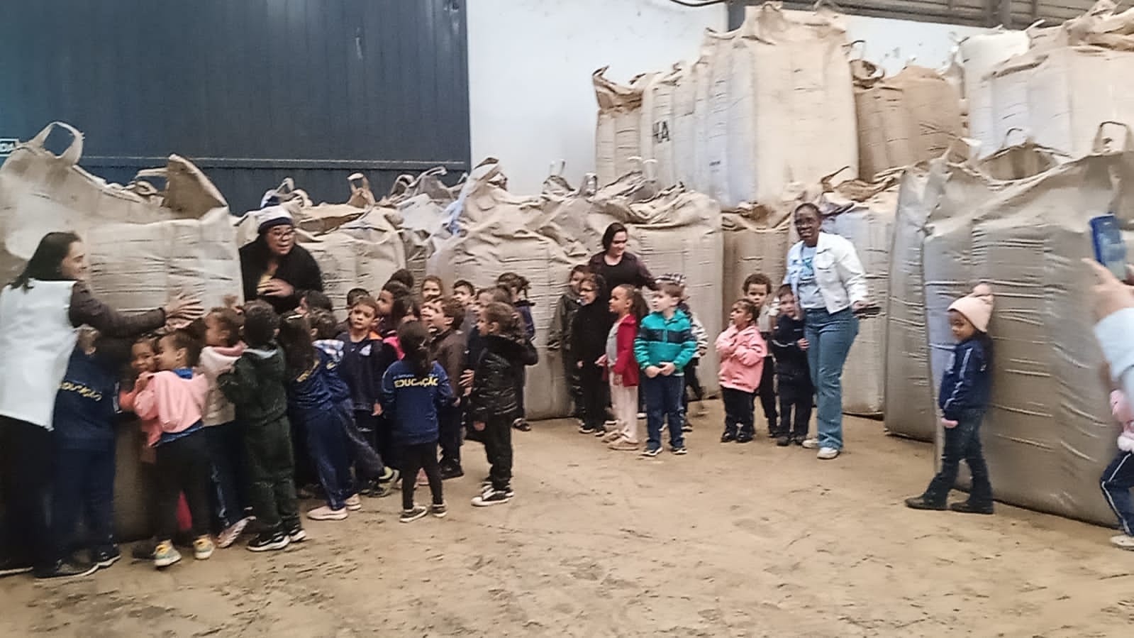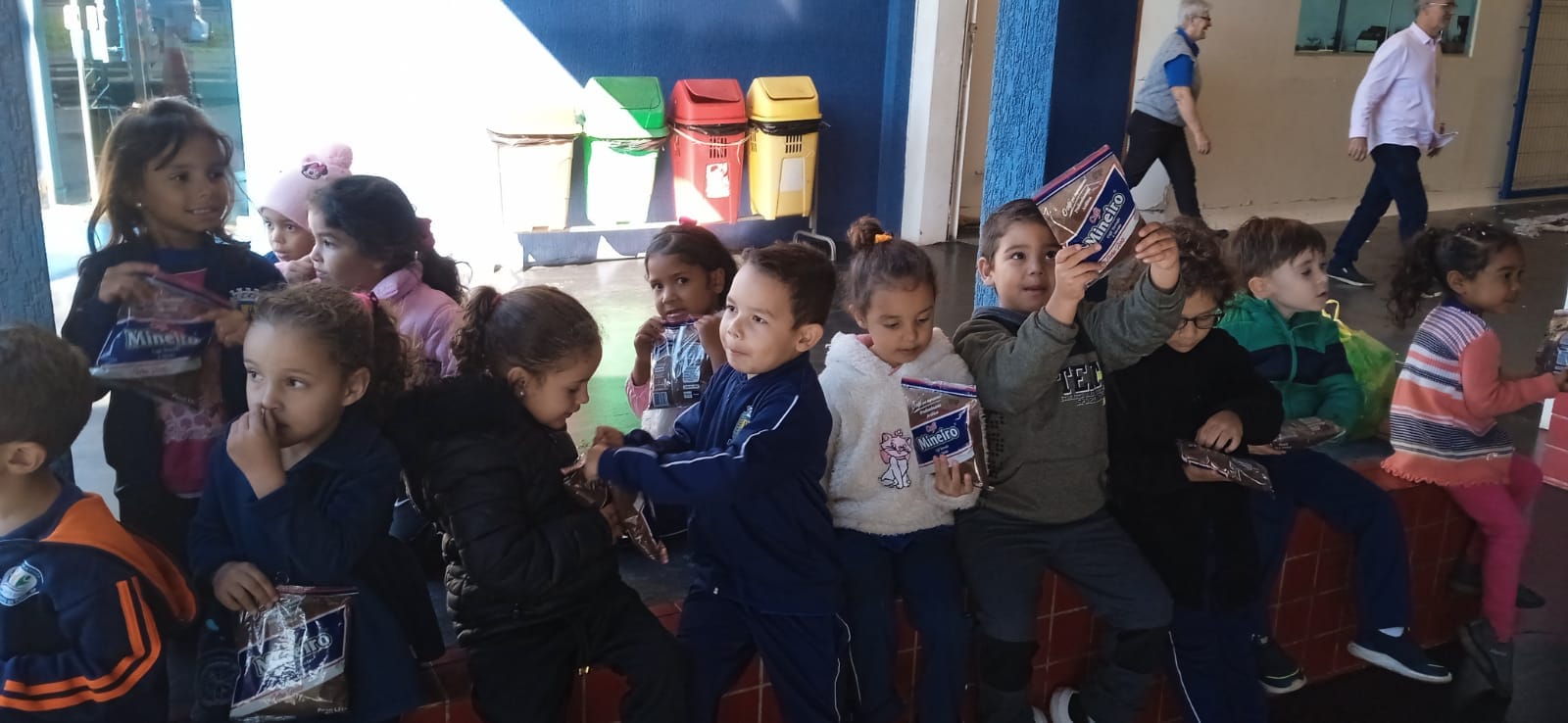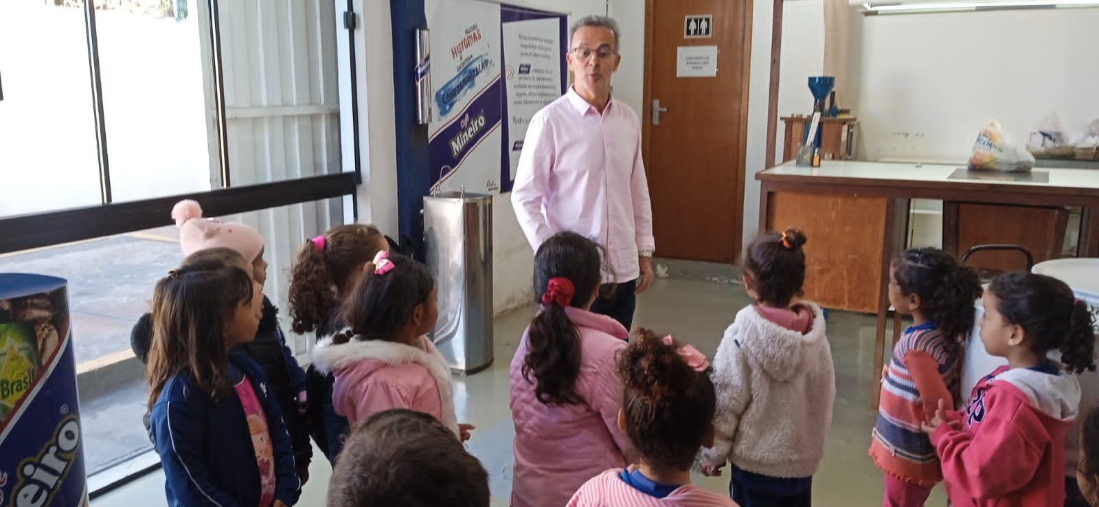 Na quarta-feira, dia 05 de junho, as turmas do Infantil 4 A, B, D e E das professoras Neusa Serafim Gomes e Rosemery Chabude Silva de Carvalho, do Cmei Marly do Nascimento Santos, do Parigot de Souza, dos dois turnos matutino e vespertino, visitaram a indústria do Café Mineiro do município de Rolândia.