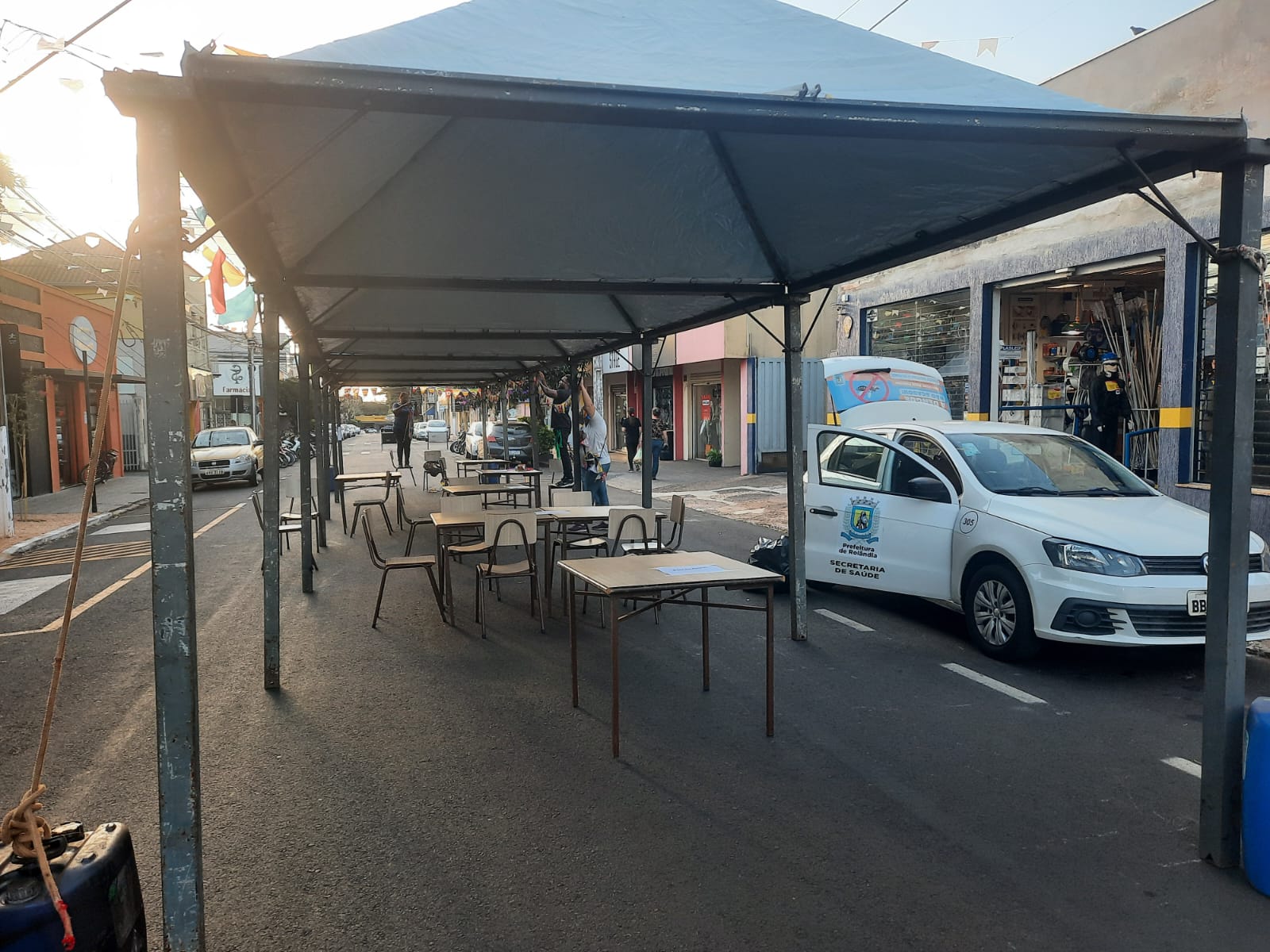 Por conta das tendas instaladas no local, o trecho da Rua Duque de Caxias, entre a Avenida Interventor Manoel Ribas e Rua Santos Dumont, centro, está com o trânsito impedido. Será liberado o tráfego no local no sábado, após às 13h.